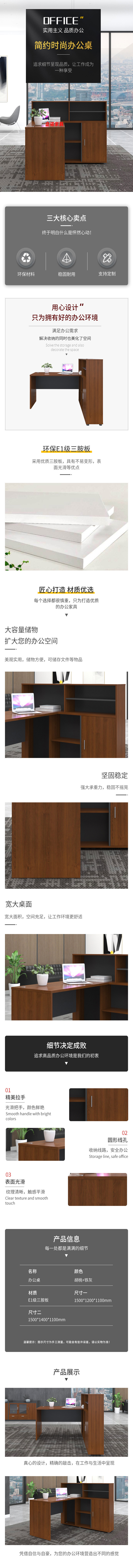 企诺 办公桌带书柜组合 QG010 1500*1200*1100mm 胡桃色(单位:张)