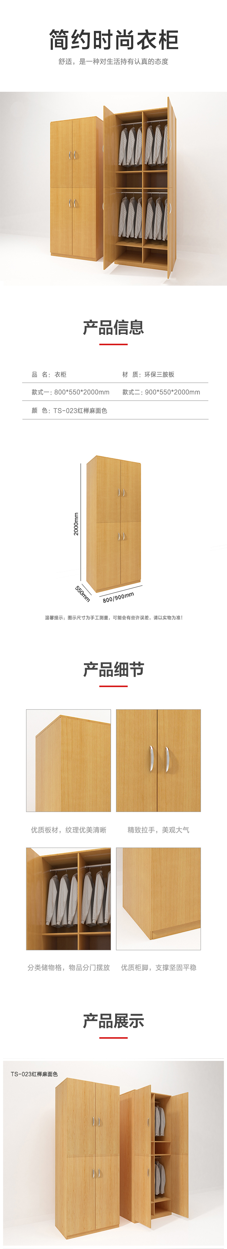 企诺 四门现代简约衣柜 QY019 800*550*2000mm 红榉木色(单位:个)