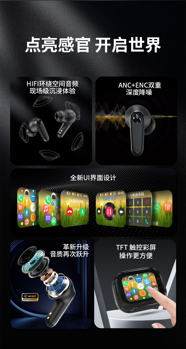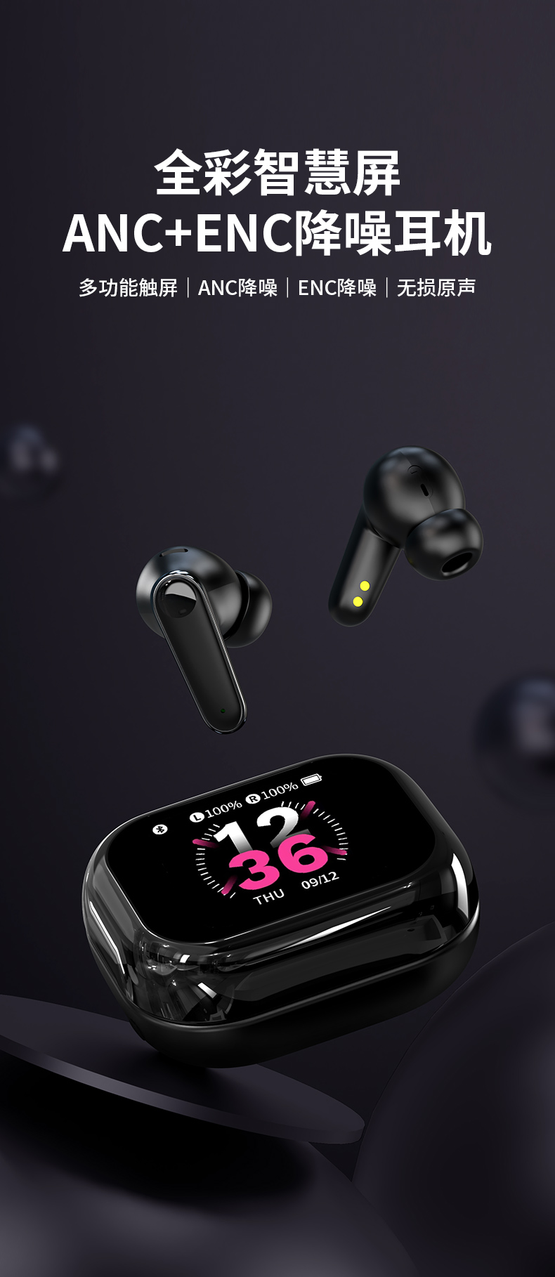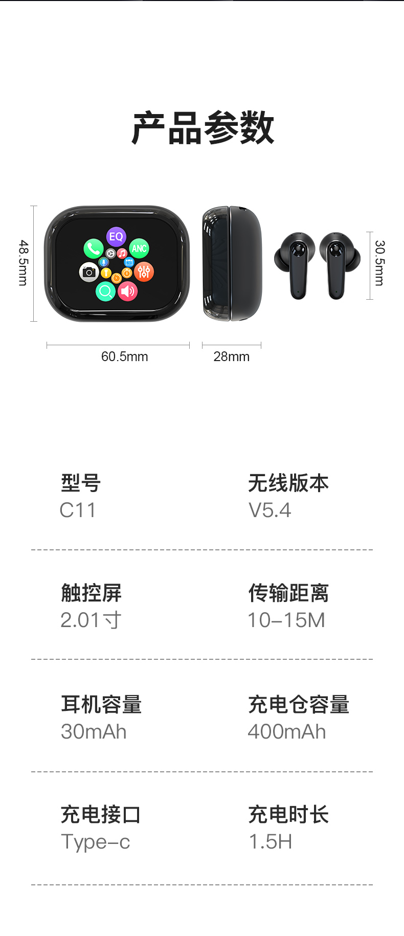 WITMIND 彩屏降噪蓝牙耳机 C11 400mAh 黑色(单位:台)