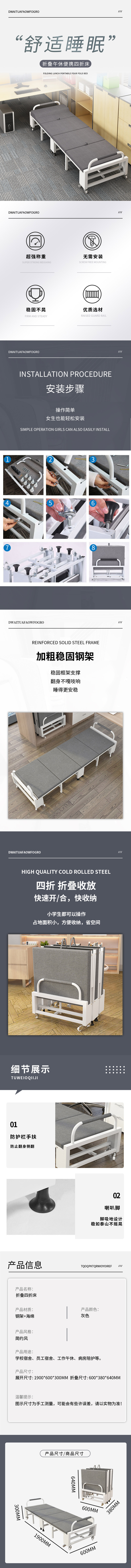 企诺 海绵三折床 QY270 1900*600*300mm 灰色(单位:张)