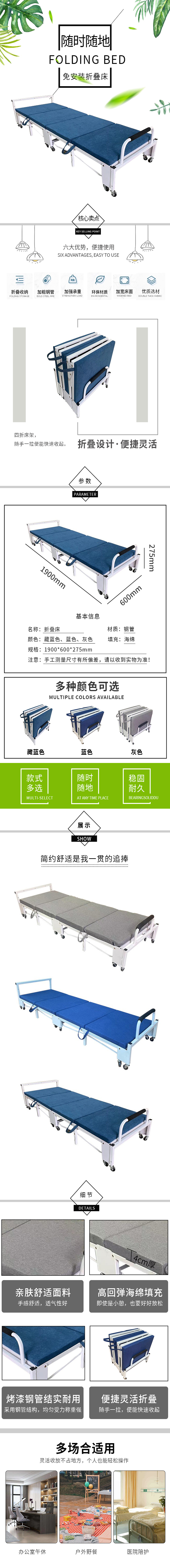 企诺 折叠床午休床四折床 QY271 1900*600*275mm 灰色(单位:张)