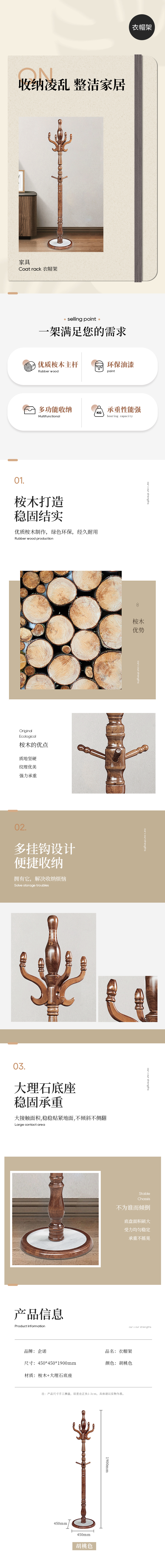 企诺 衣帽架 QY392 450*450*1900mm 胡桃色(单位:个)