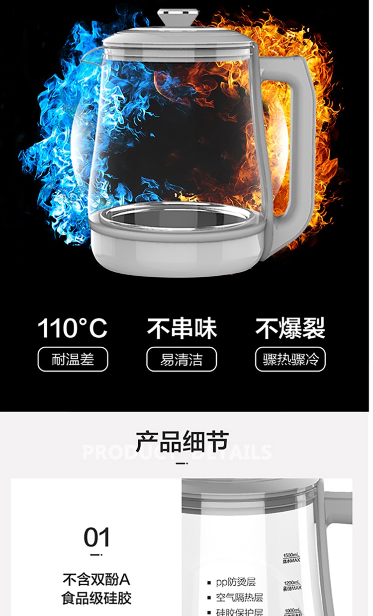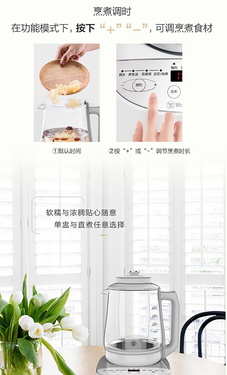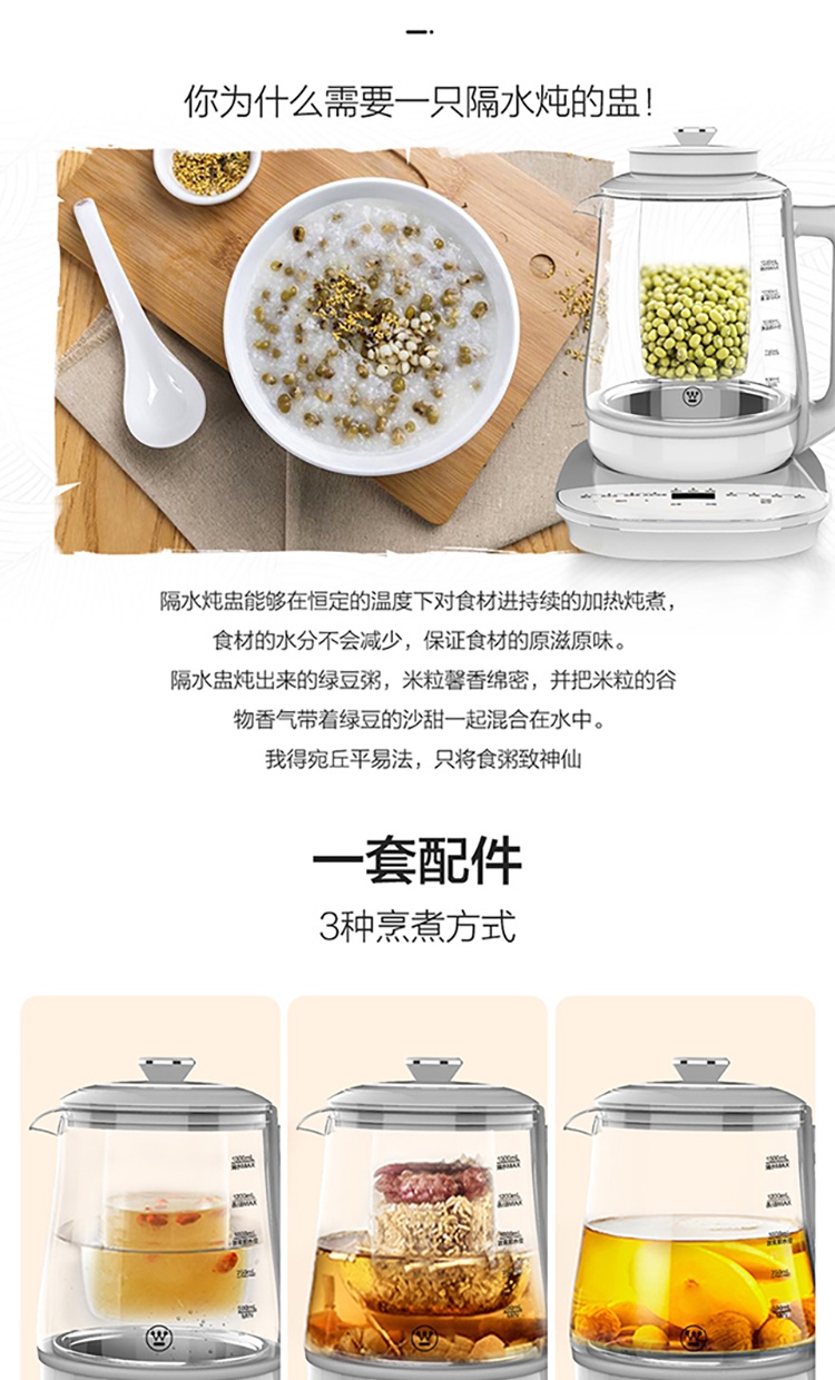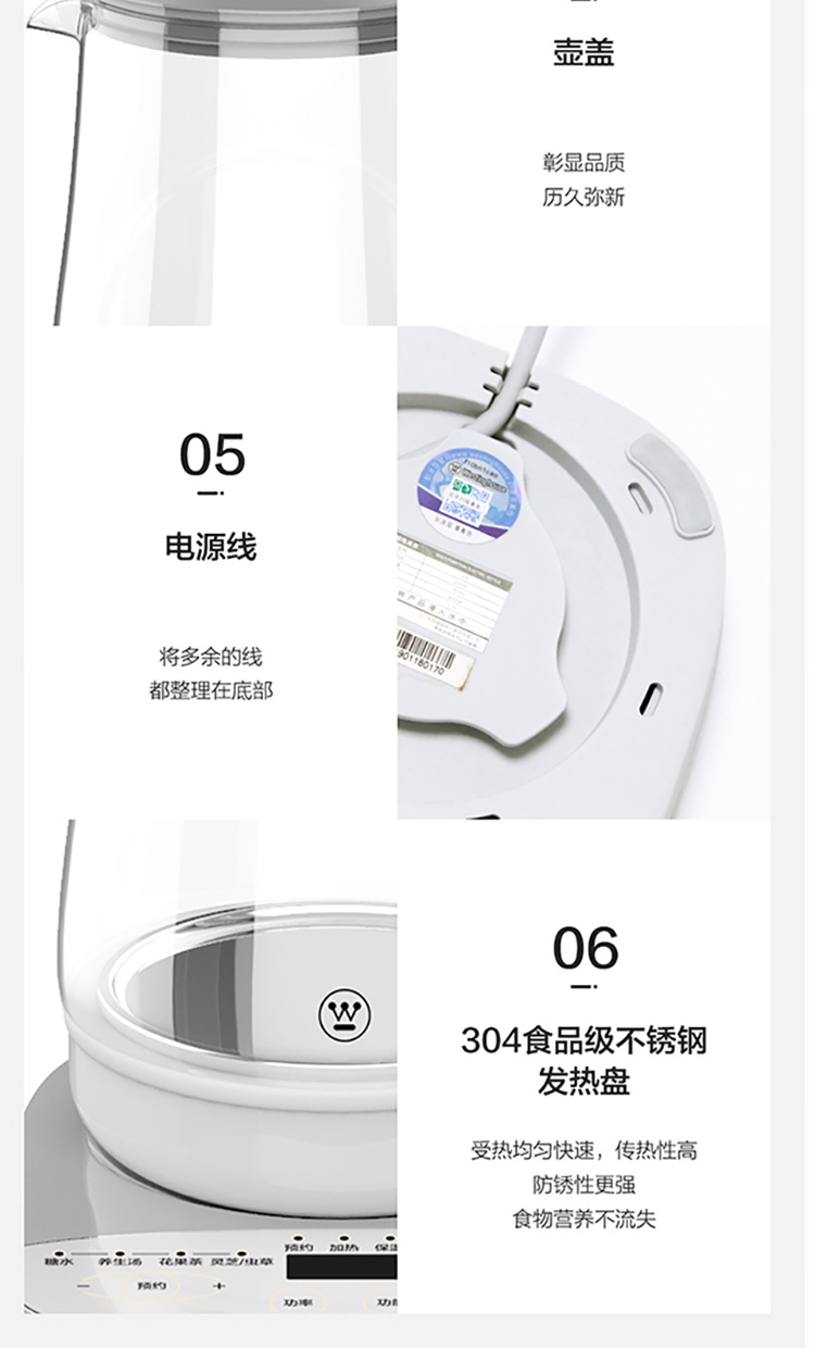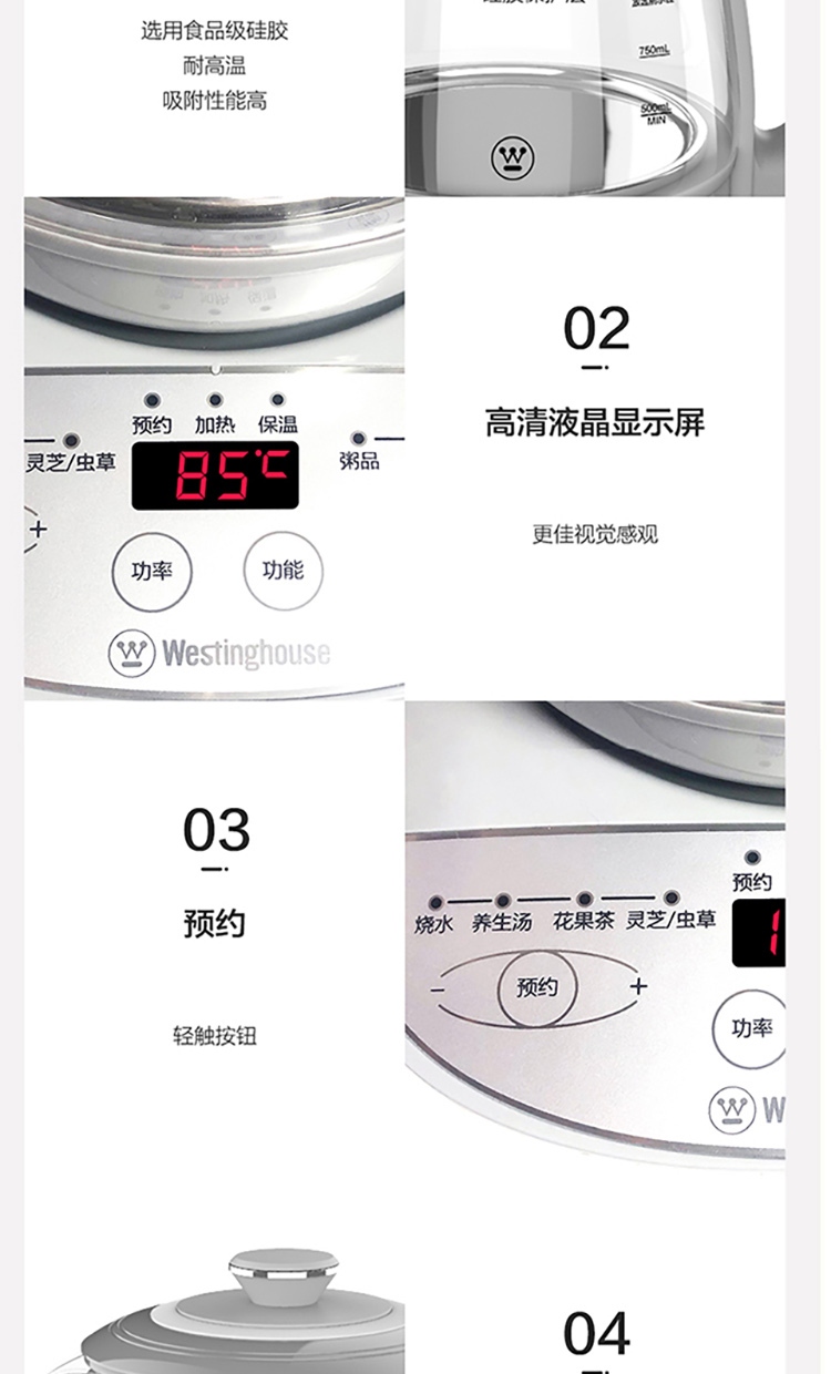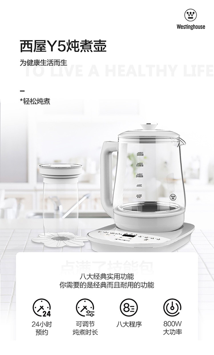 西屋Westinghouse电煮壶Y5 1.5L 220V 800W (单位:台) 白色