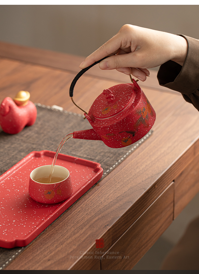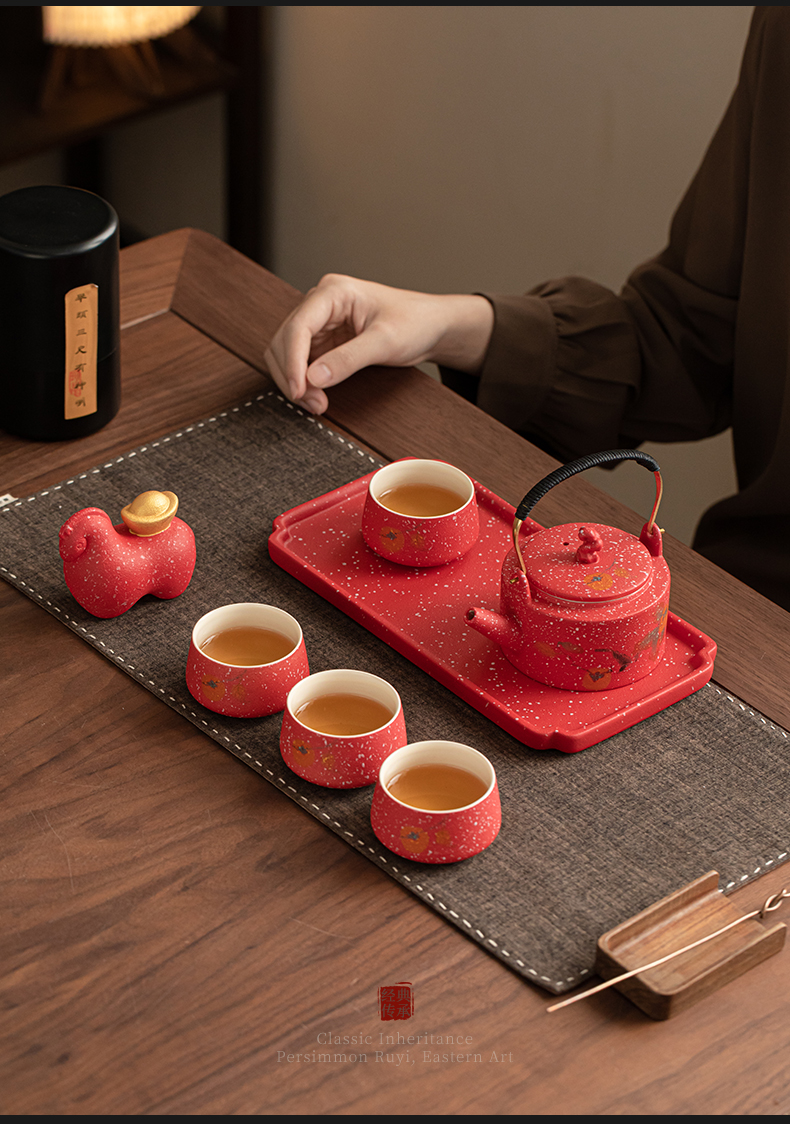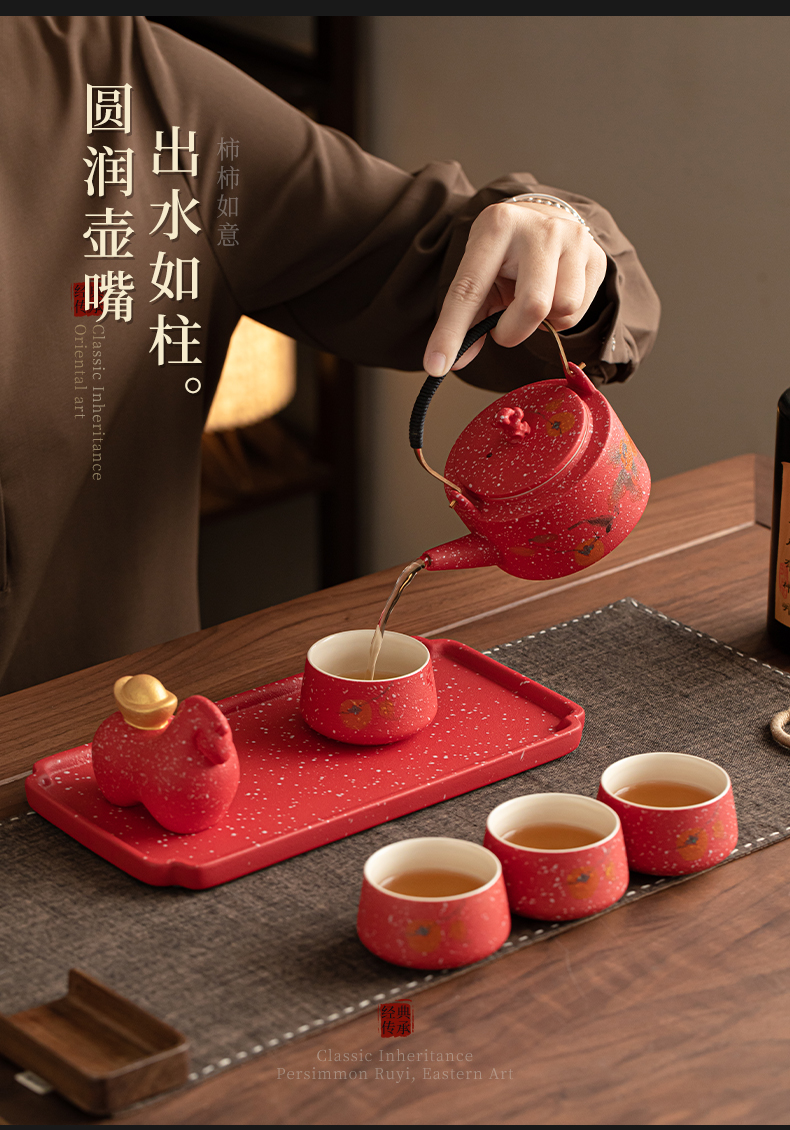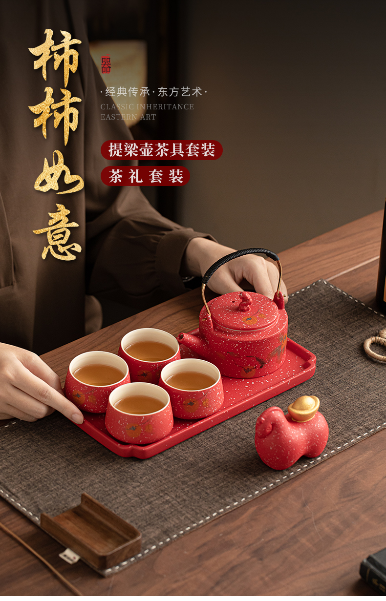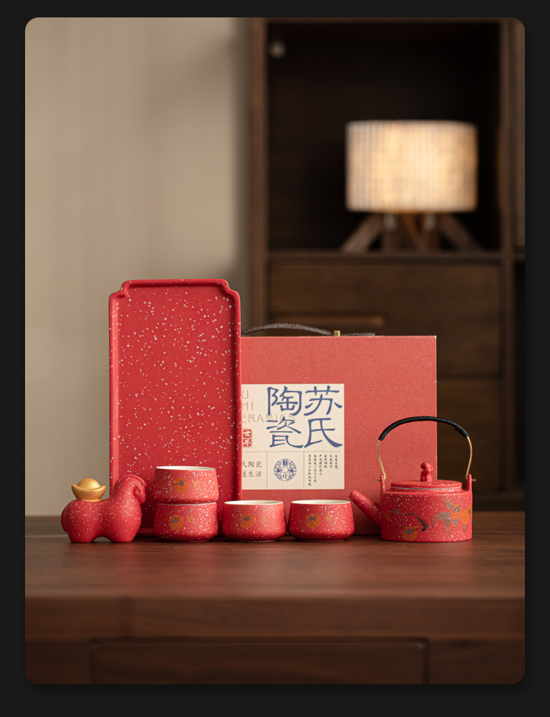 苏氏陶瓷(SUSHI CERAMICS) 国潮柿柿如意茶具茶宠礼盒 J1096 套装*7头 红色(单位:套)