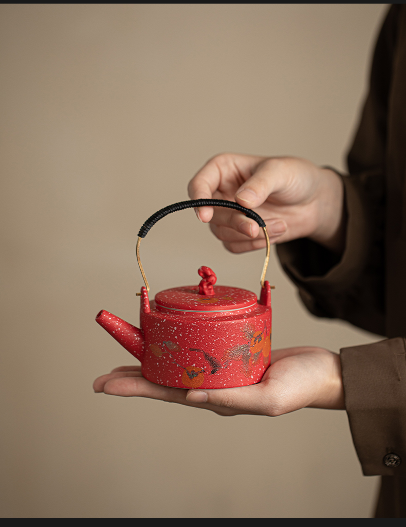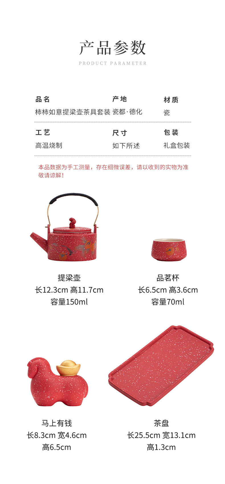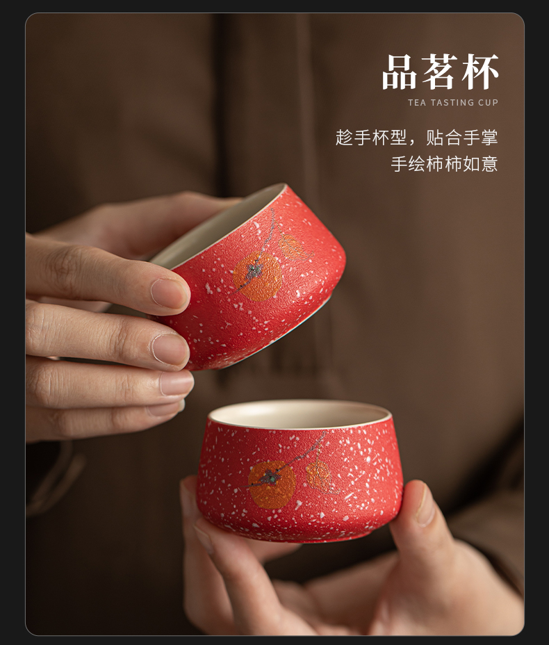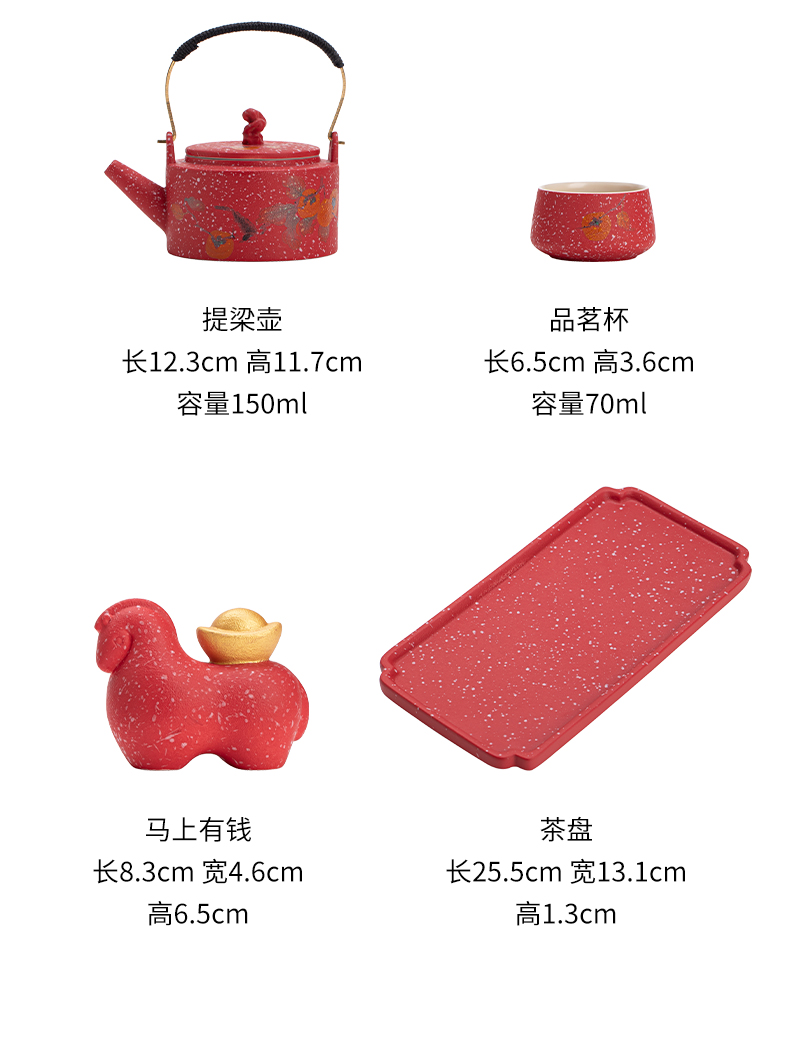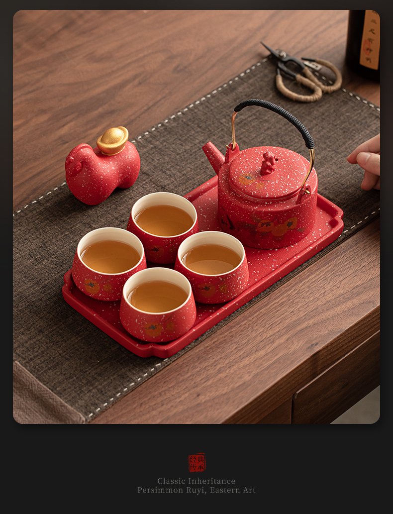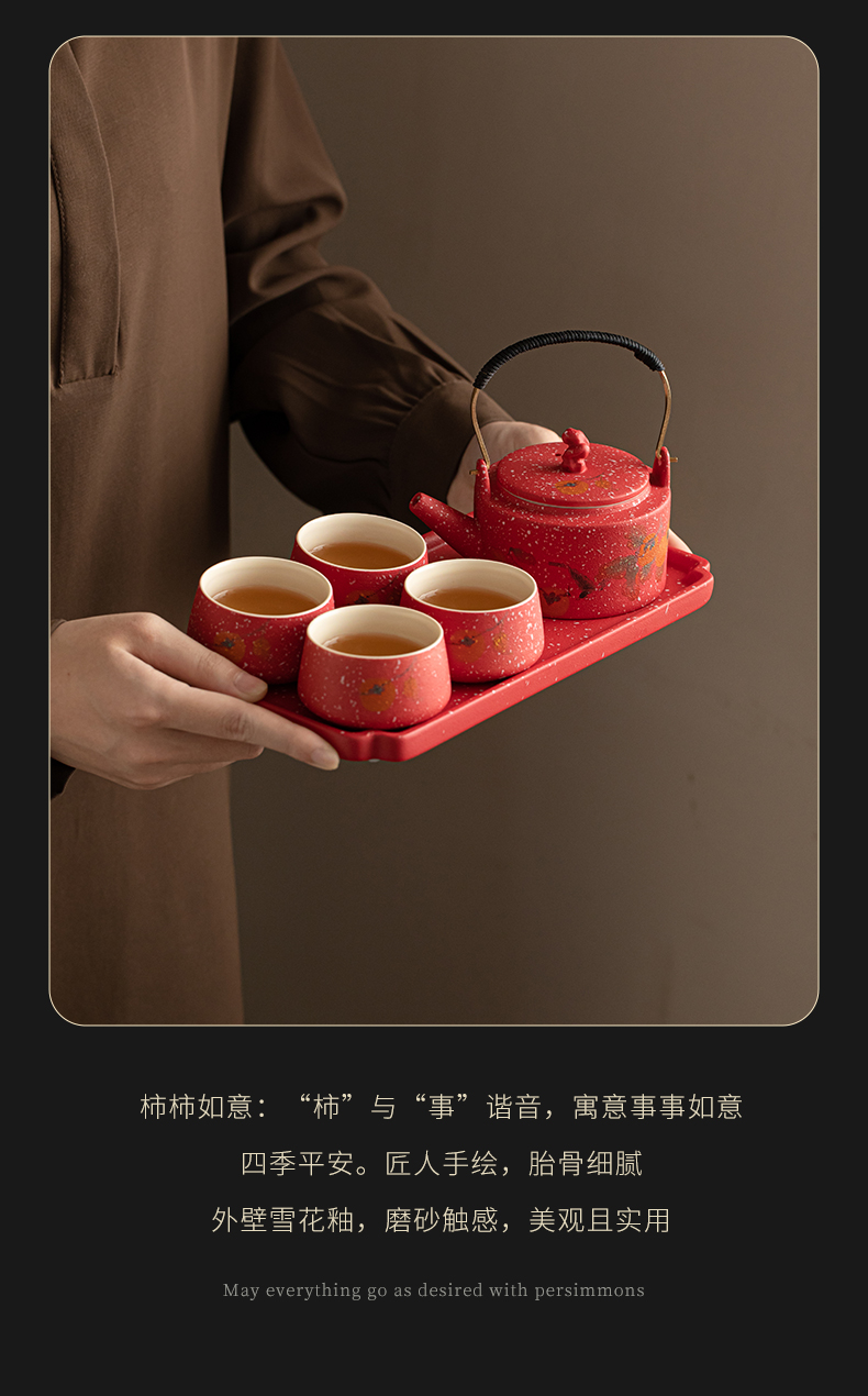 苏氏陶瓷(SUSHI CERAMICS) 国潮柿柿如意茶具茶宠礼盒 J1096 套装*7头 红色(单位:套)