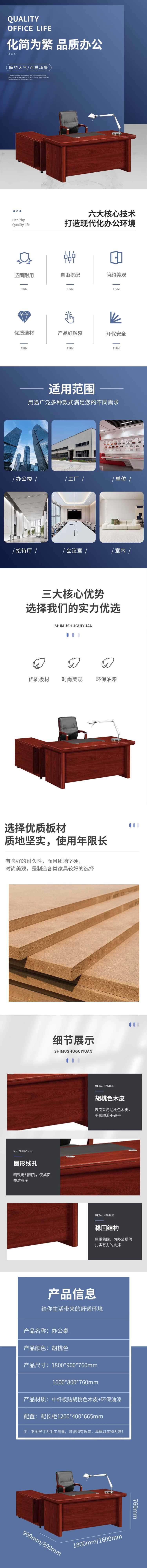 企诺 老板桌办公桌油漆班台 QU019 1800*900*760mm 胡桃色(单位:张)