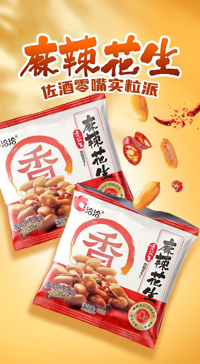 洽洽 休闲零食 麻辣花生 下酒菜 12g*15袋 红色(单位:箱)