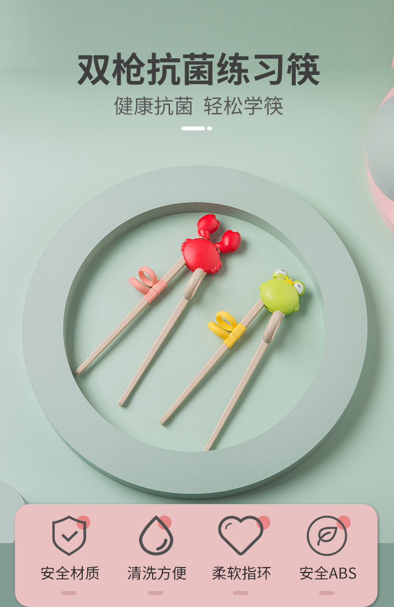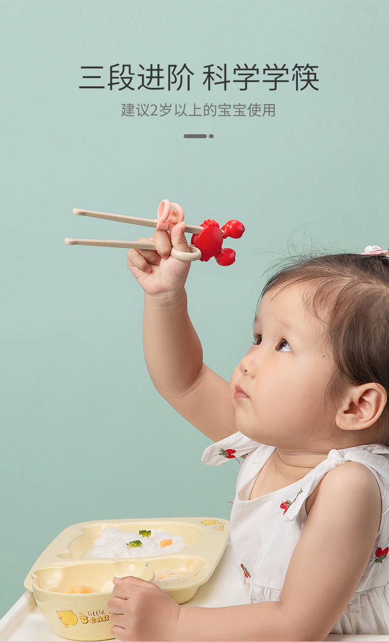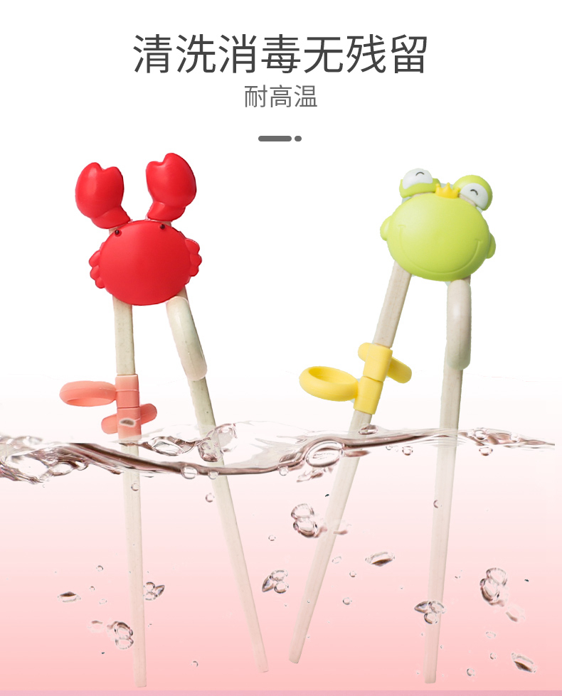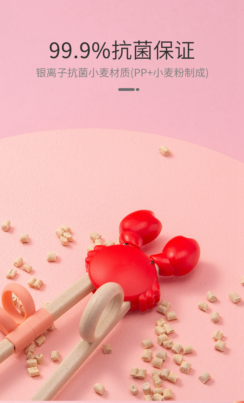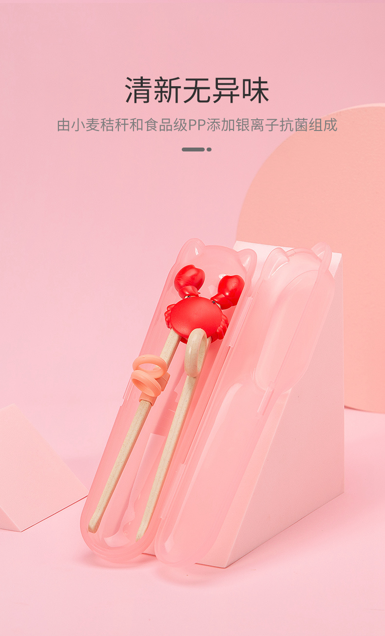 双枪(Suncha)筷子 稻壳可爱螃蟹儿童筷 宝宝练习训练筷纠正婴幼儿学习筷 粉色