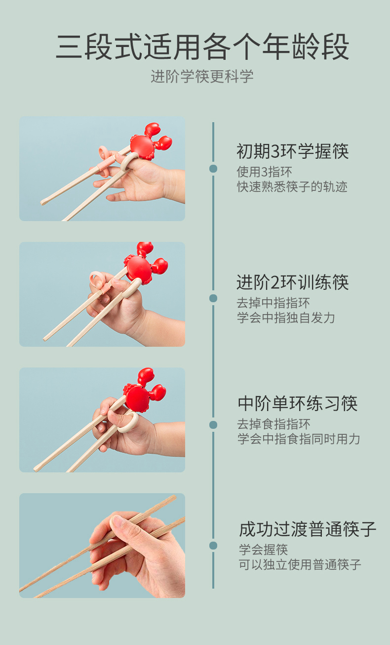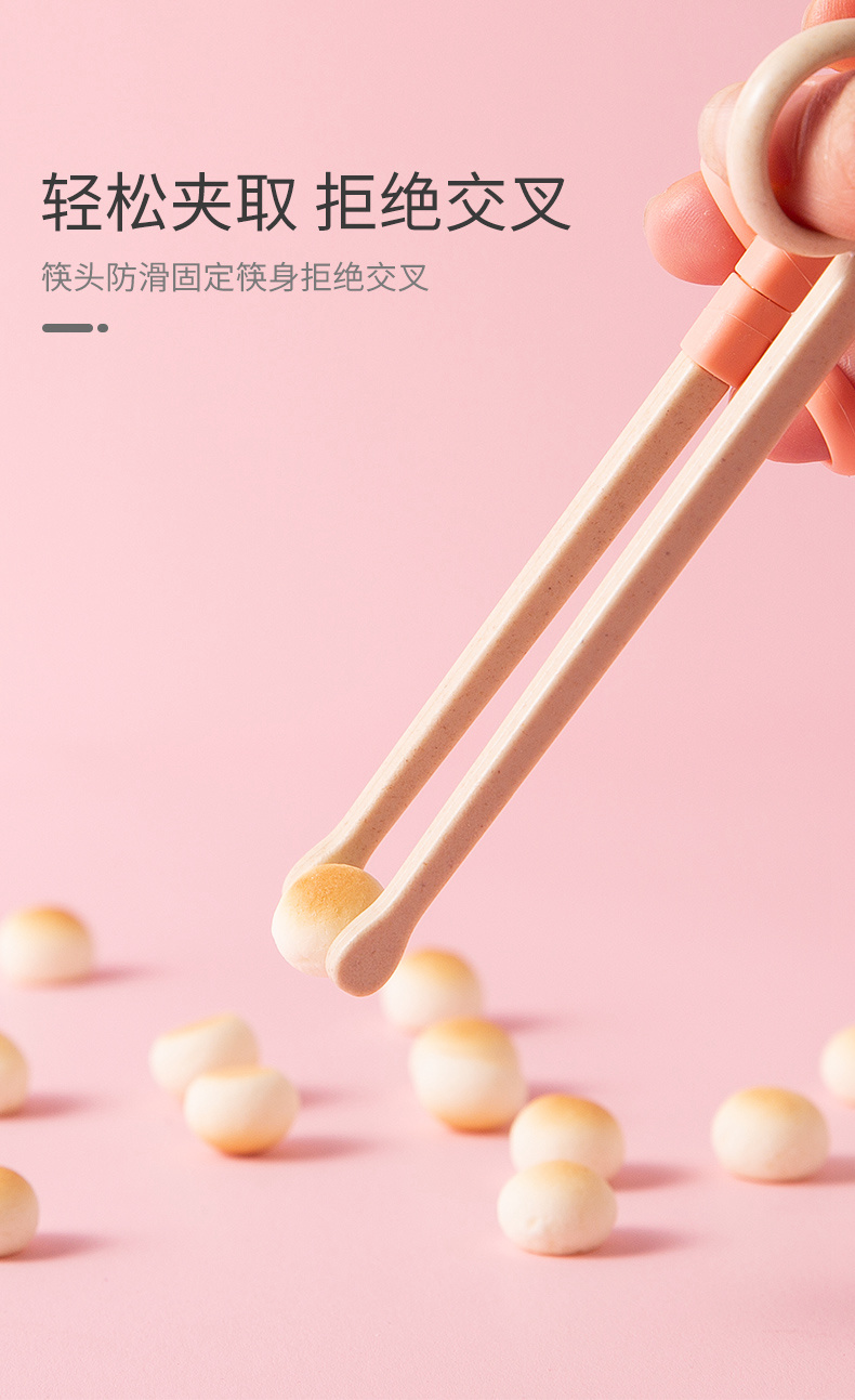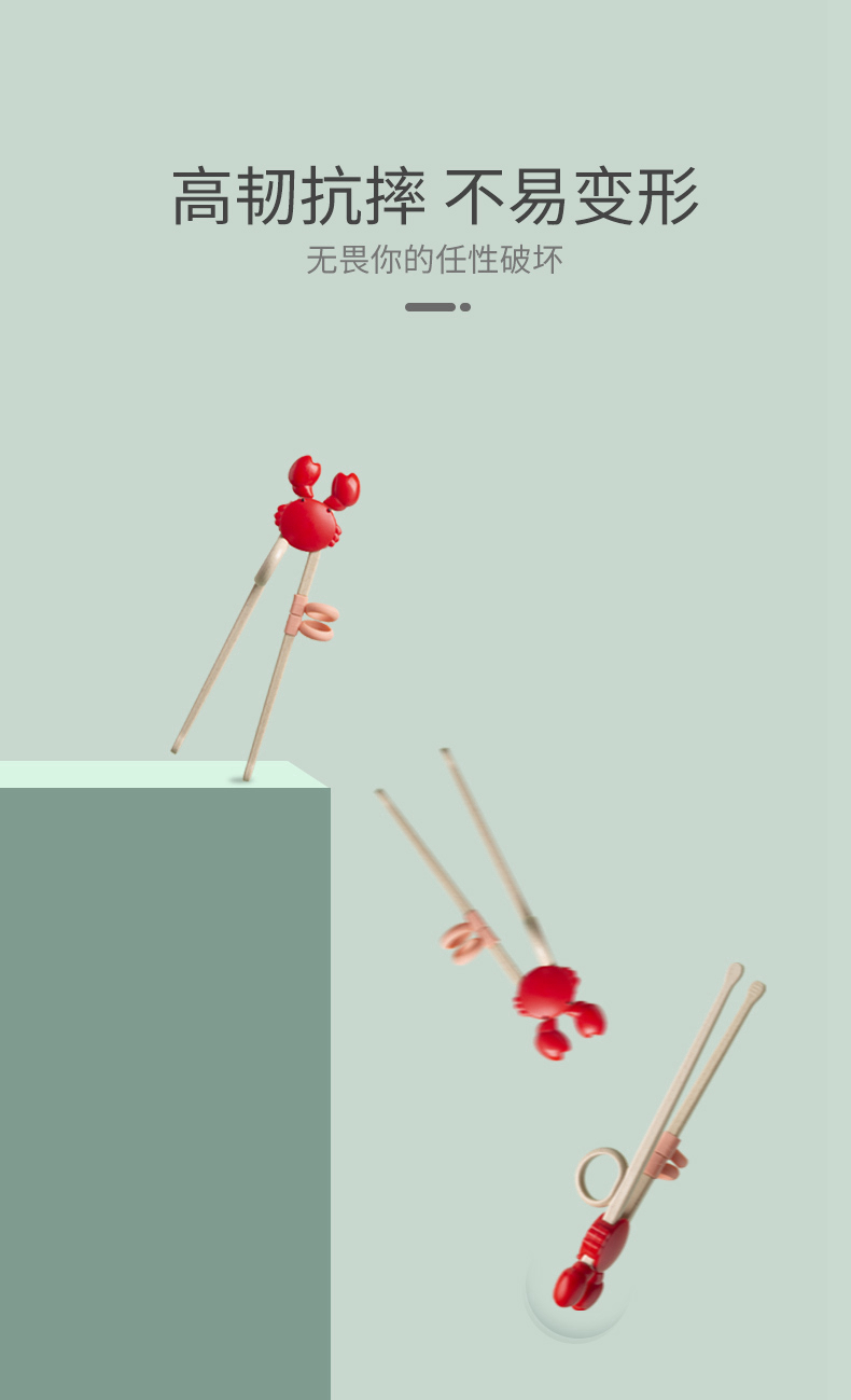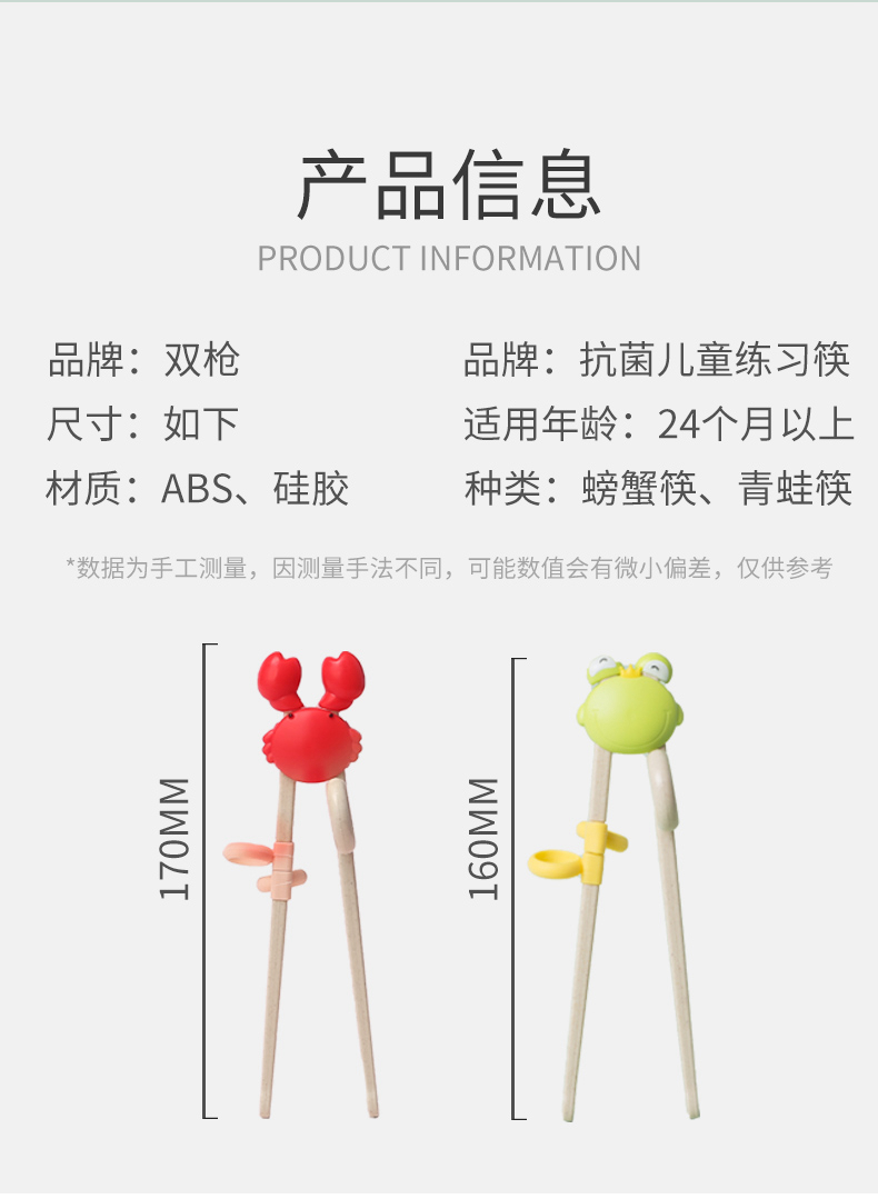 双枪(Suncha)筷子 稻壳可爱螃蟹儿童筷 宝宝练习训练筷纠正婴幼儿学习筷 粉色