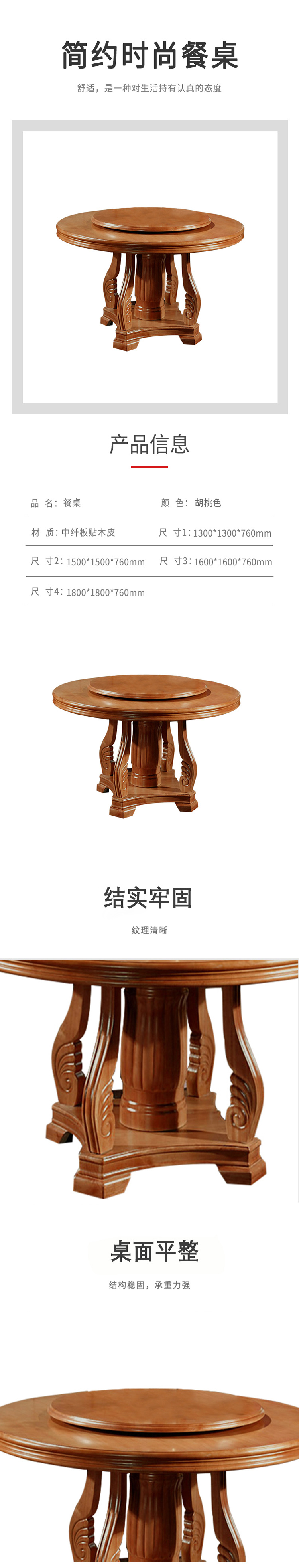 企诺 新中式圆形餐桌 QS009 1600*1600*760mm 胡桃色(单位:张)