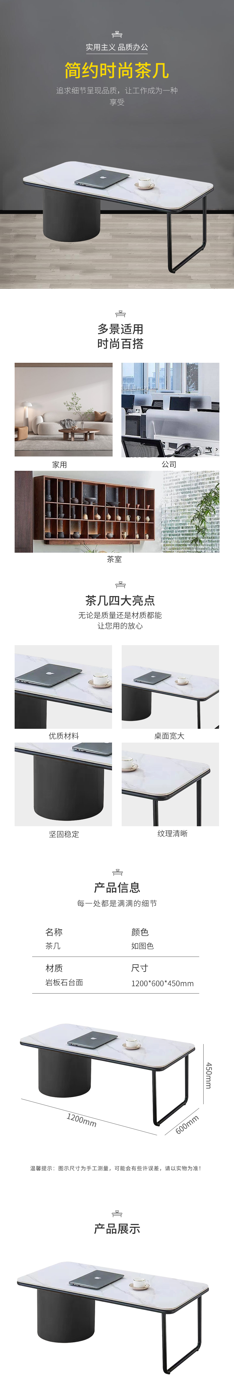 企诺 茶几长几 QH070 1200*600*450mm 白色(单位:张)