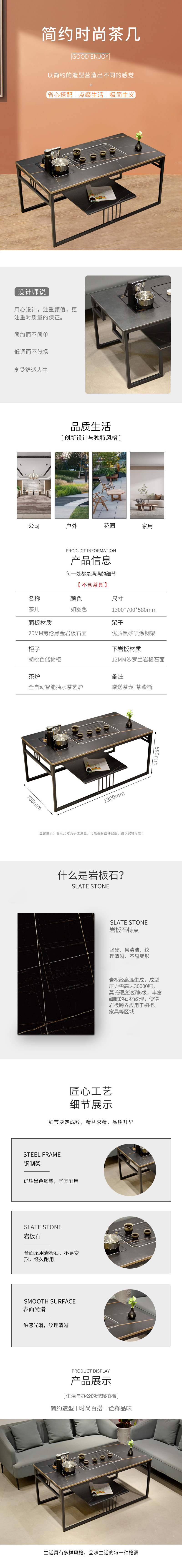 企诺 办公茶桌茶几茶台长几 QH072 1300*700*580mm 黑色(单位:张)