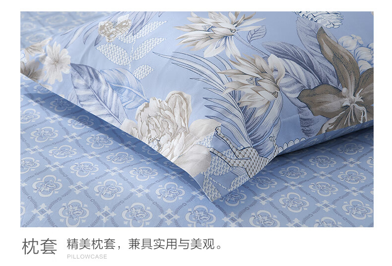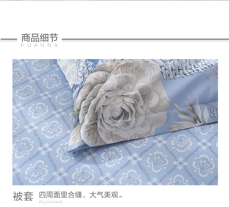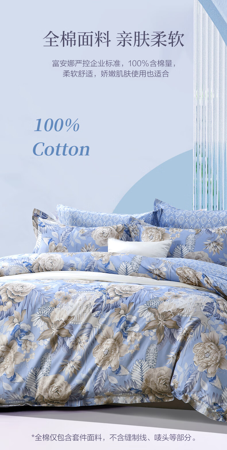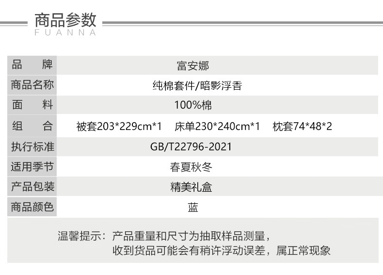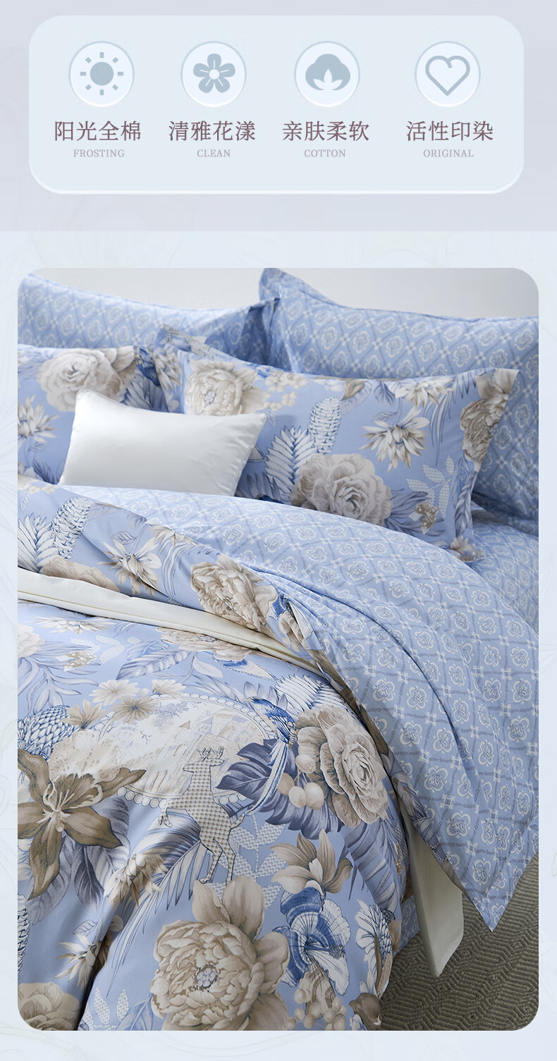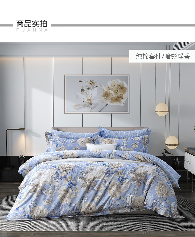 富安娜 纯棉四件套 暗影浮香 203*229cm 蓝色(单位:套)