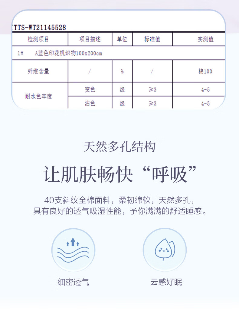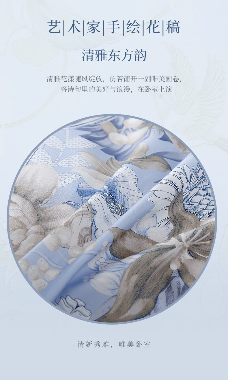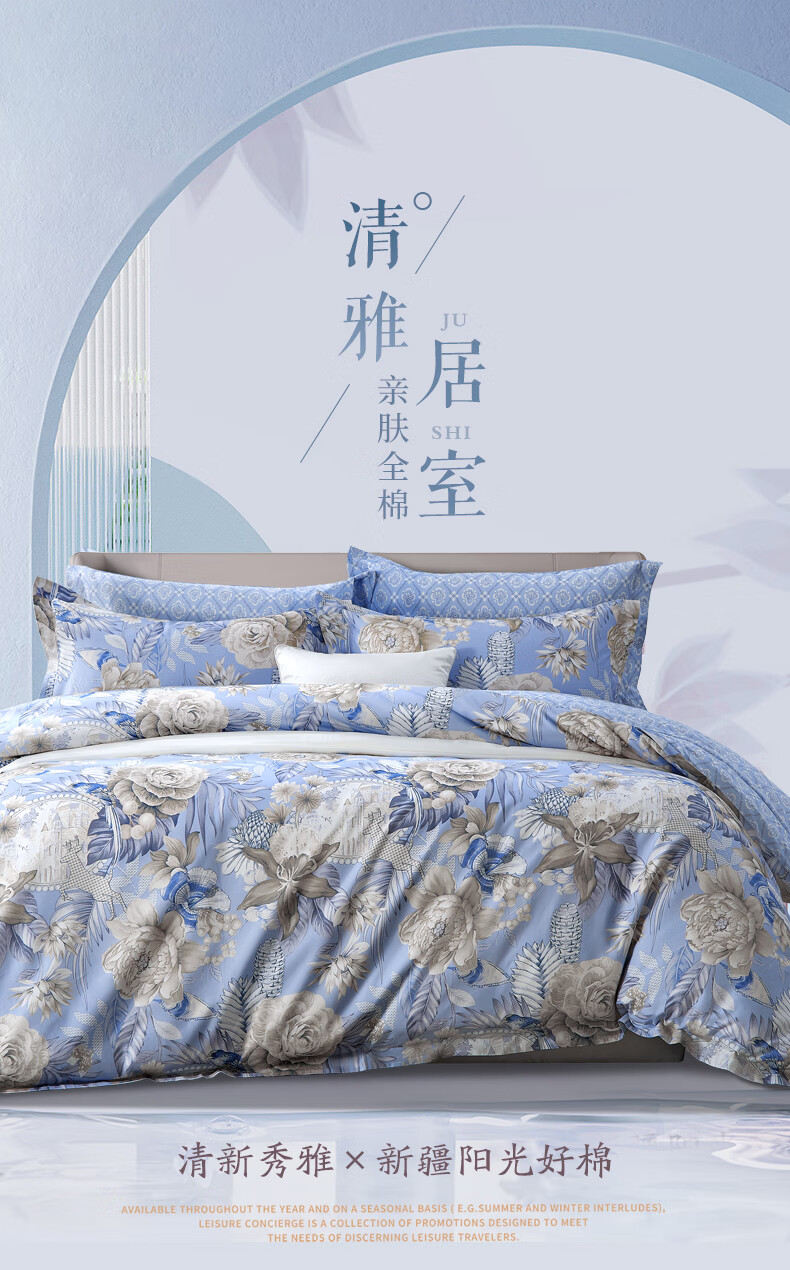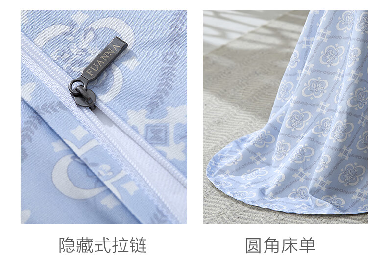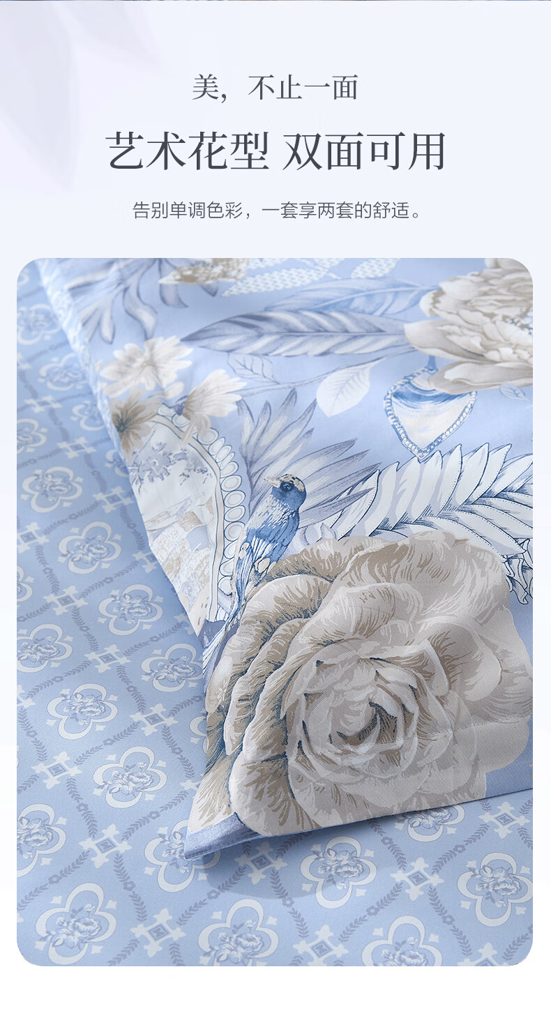 富安娜 纯棉四件套 暗影浮香 203*229cm 蓝色(单位:套)