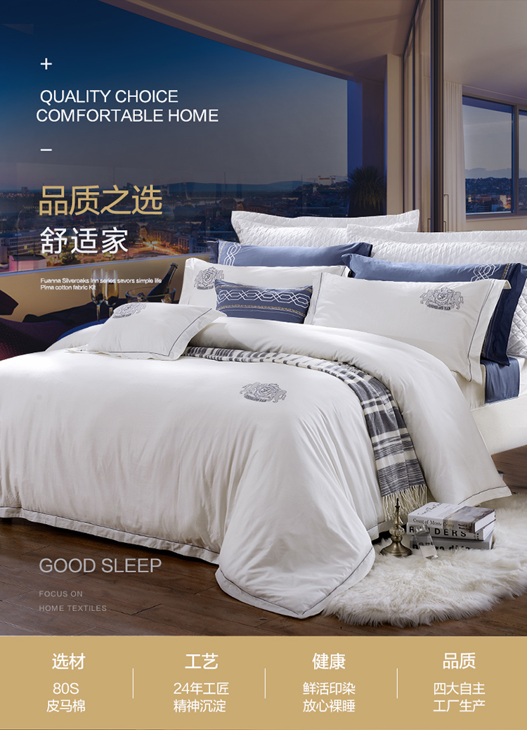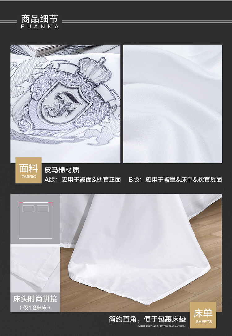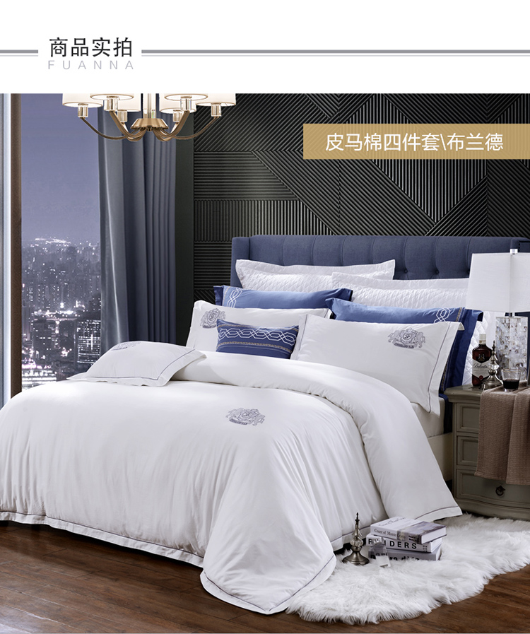 富安娜 80支皮马棉四件套布兰德白色 8110031532095 203*229cm 本白色(单位:套)