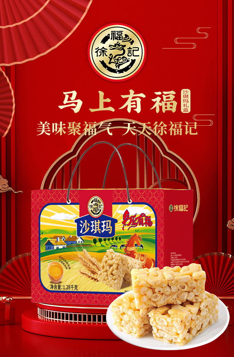 徐福记 沙琪玛礼盒 马上有福 1280g 红色(单位:盒)