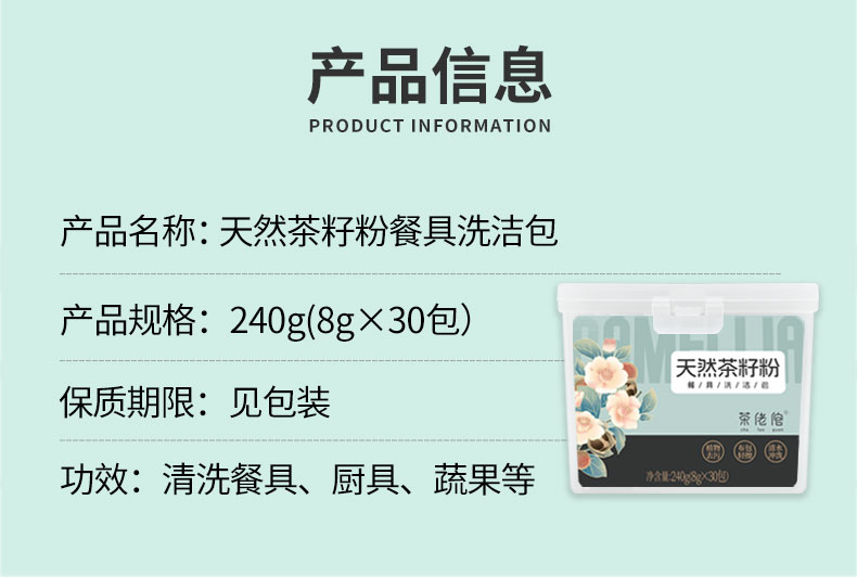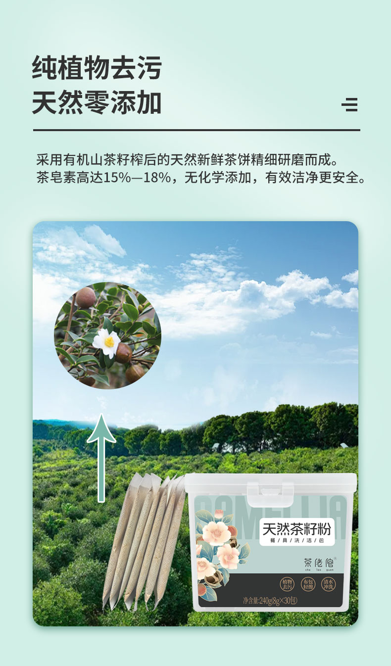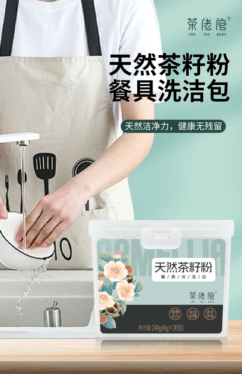 茶佬倌 天然茶籽粉 餐具洗洁包 240g 白色(单位:盒)