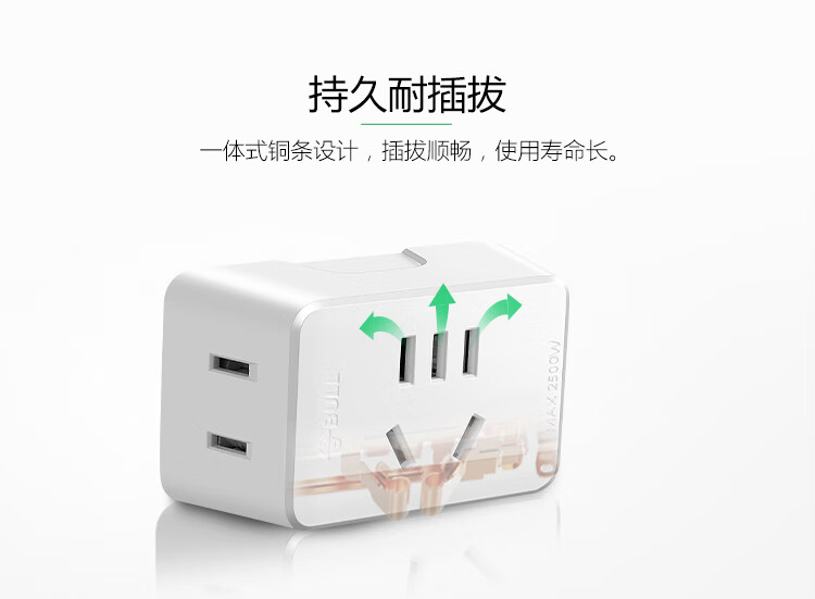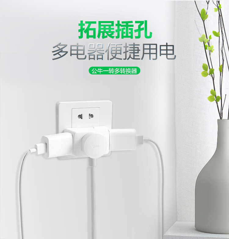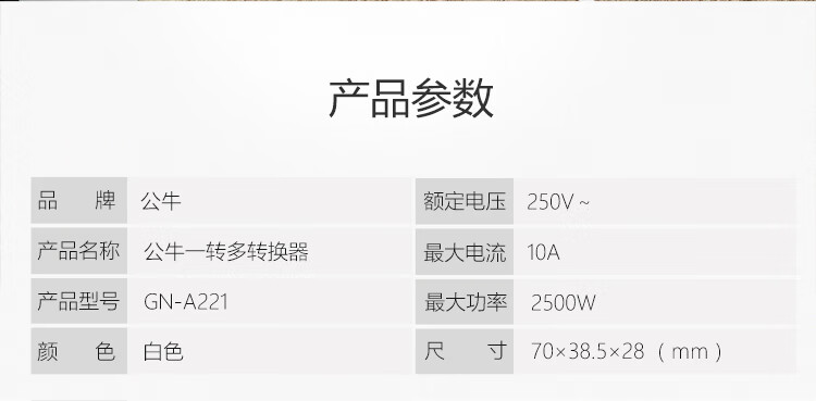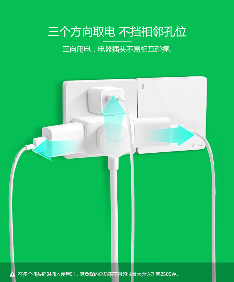 公牛(BULL) 一转三插座3位无线转换插座 A221 最大功率:2500W 白色(单位:个)
