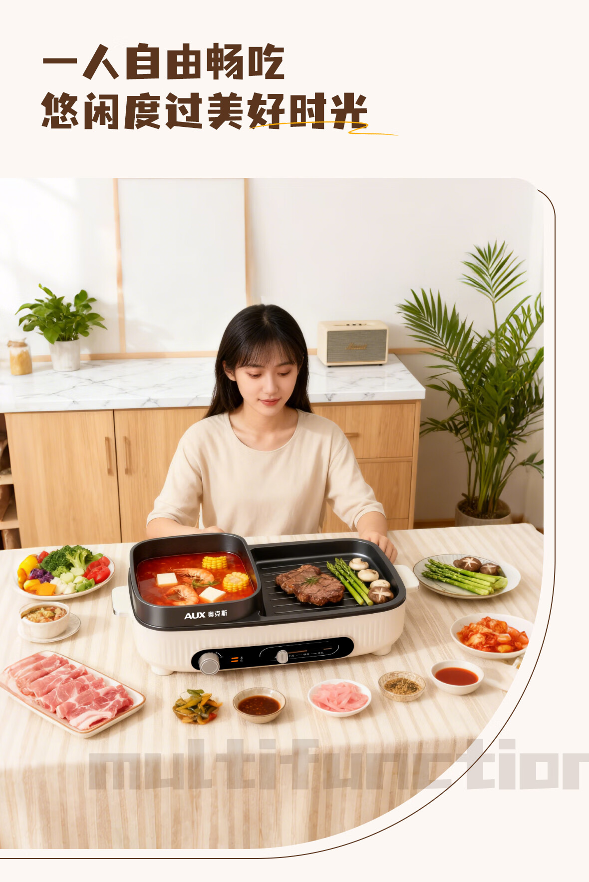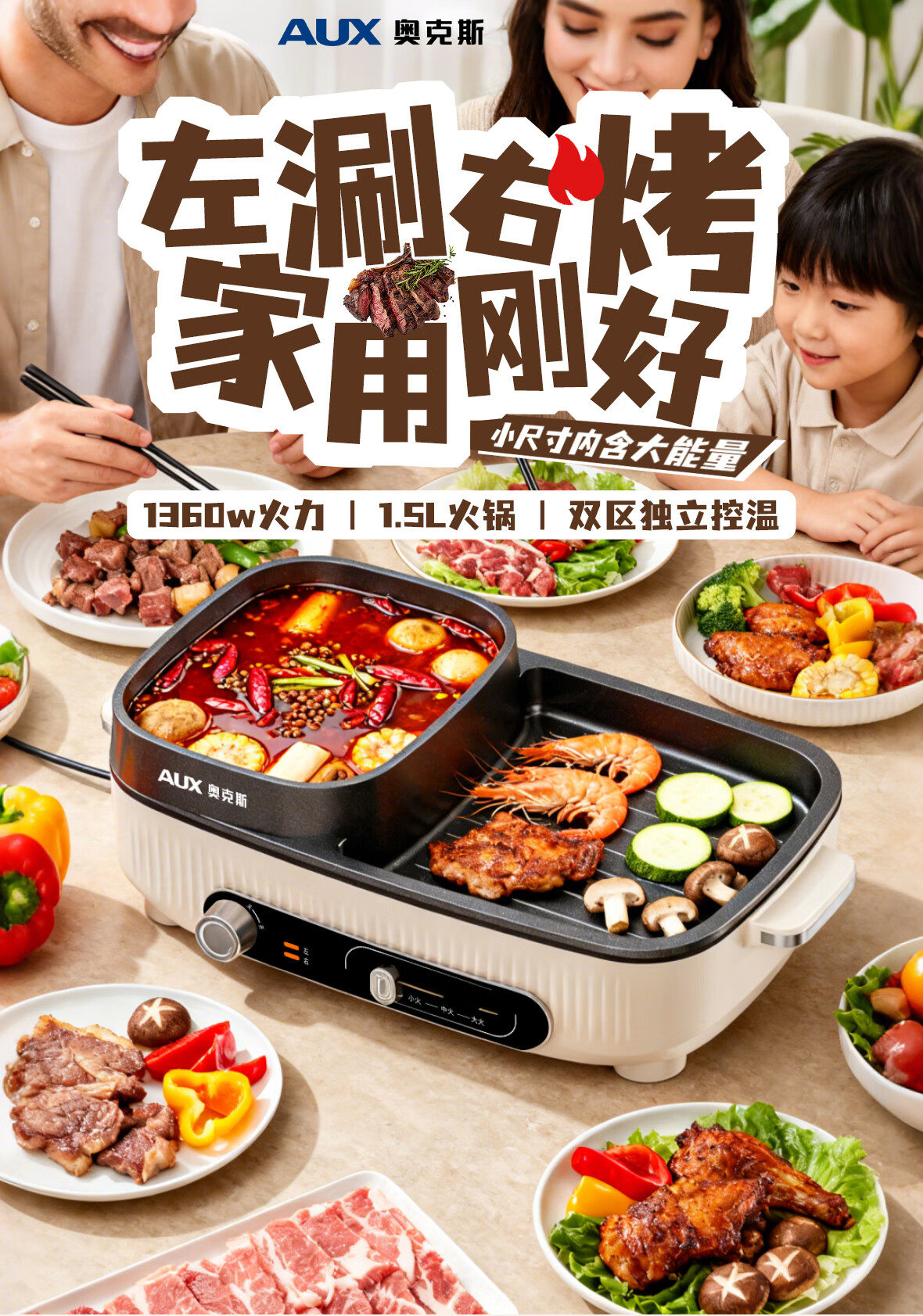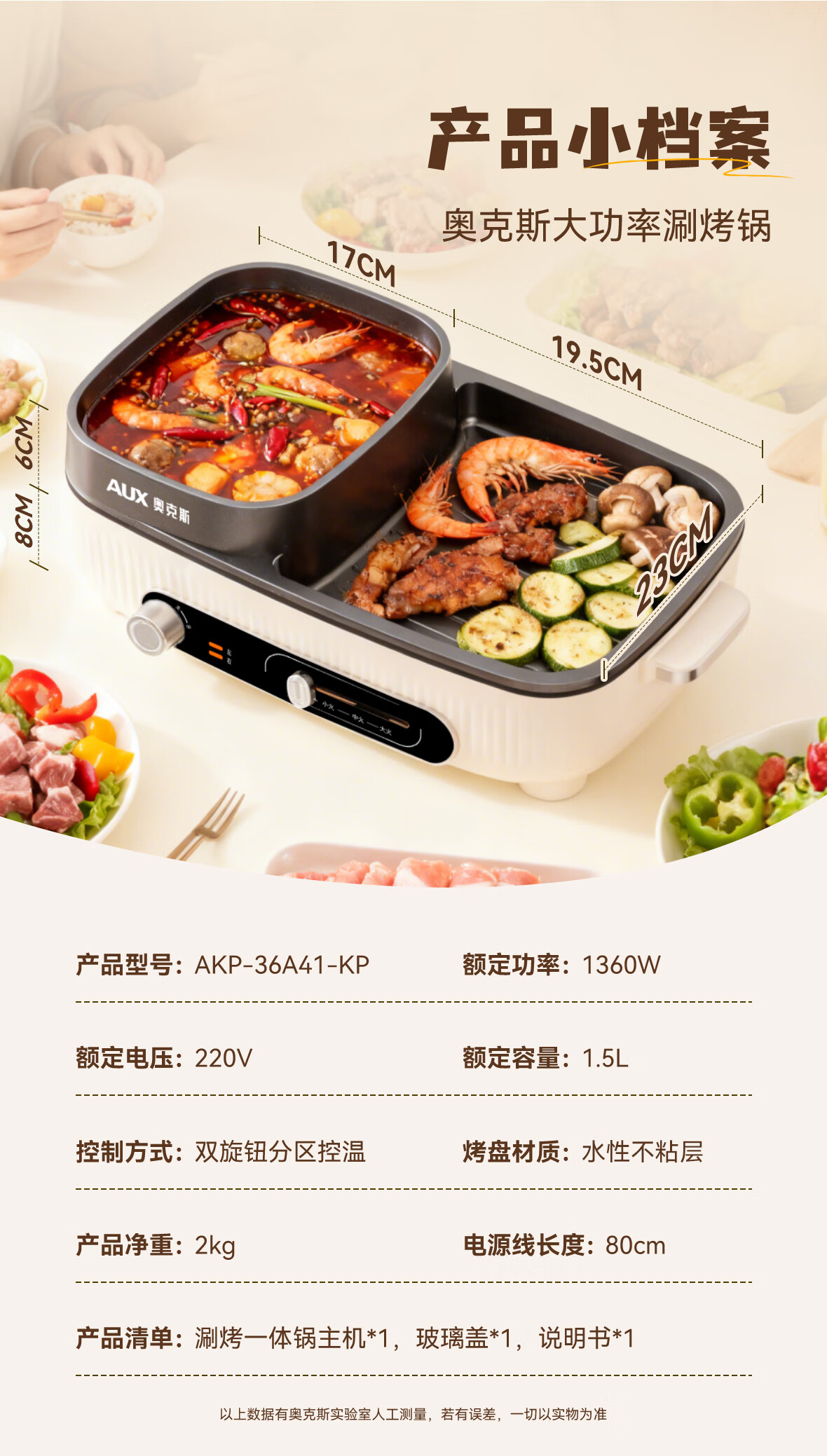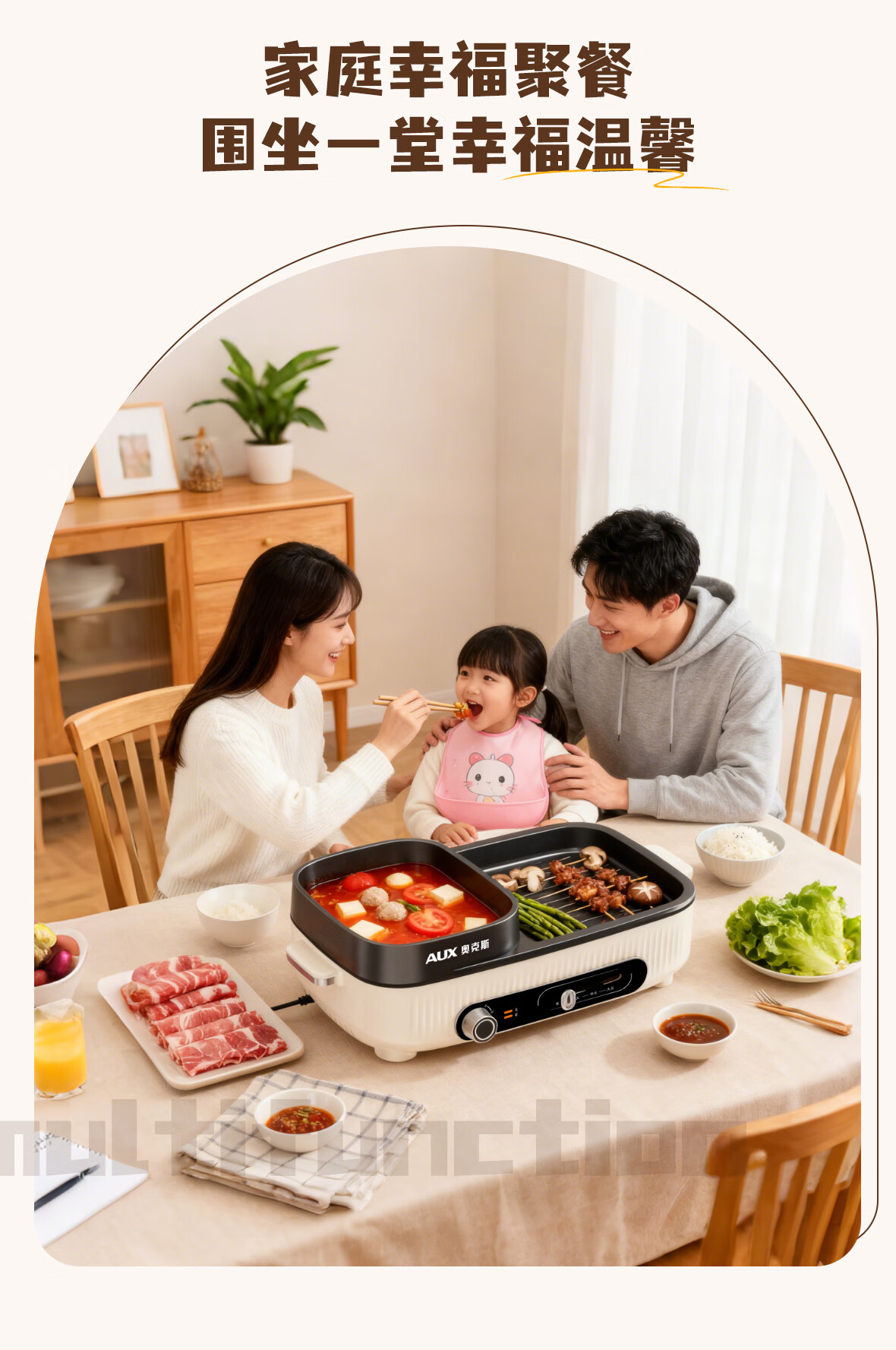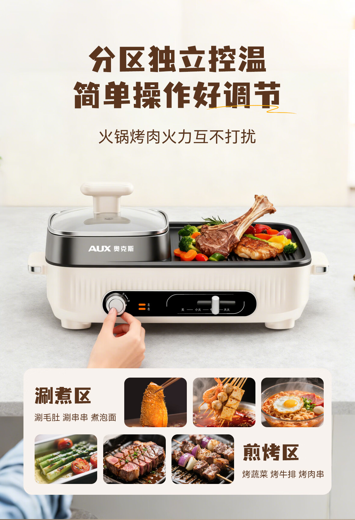 奥克斯(AUX) 多功能电热锅 AKP-36A41-KP 1.5L 白色(单位:台)