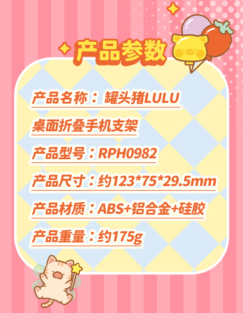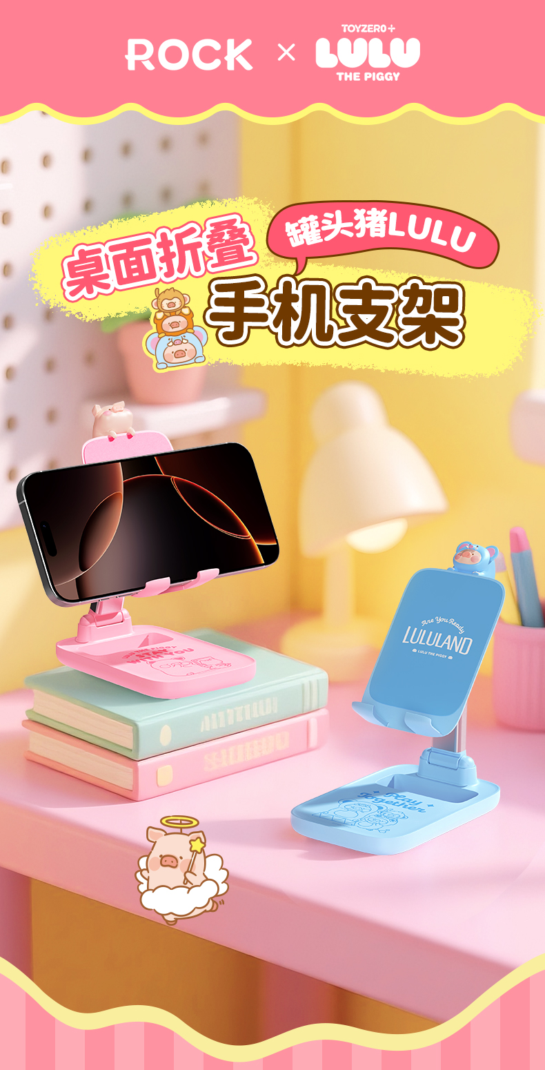 洛克(ROCK) 罐头猪LULU N30桌面折叠手机支架 RPH1020 产品重量:约175g 蓝色(单位:个)