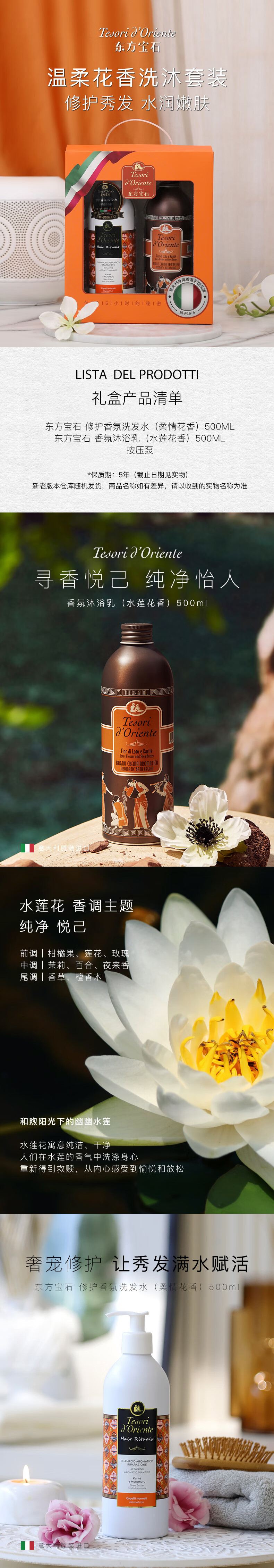 东方宝石(Tesori D’oriente) 水润嫩肤修护洗沐礼盒 YZ-SLHXM03 1000ml 橙色(单位:盒)
