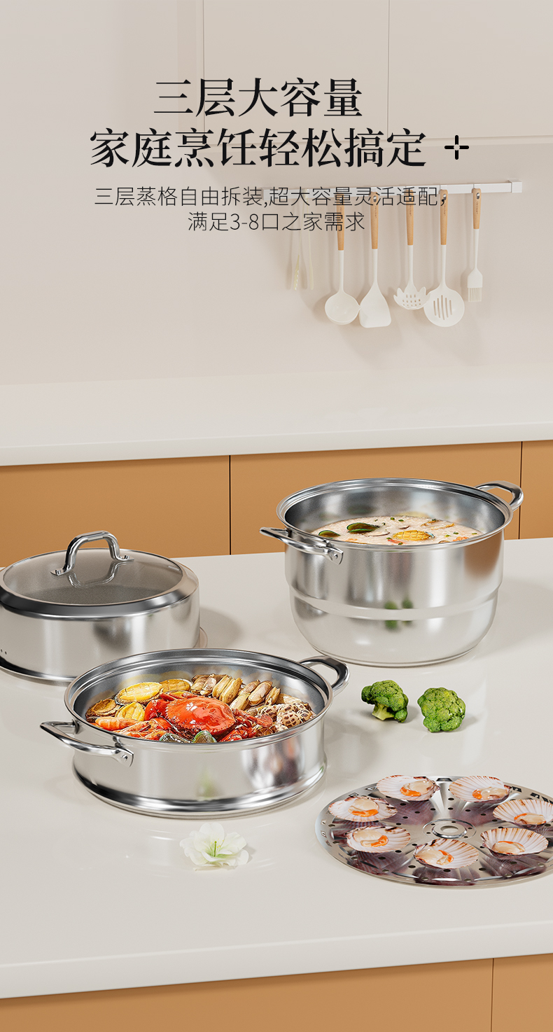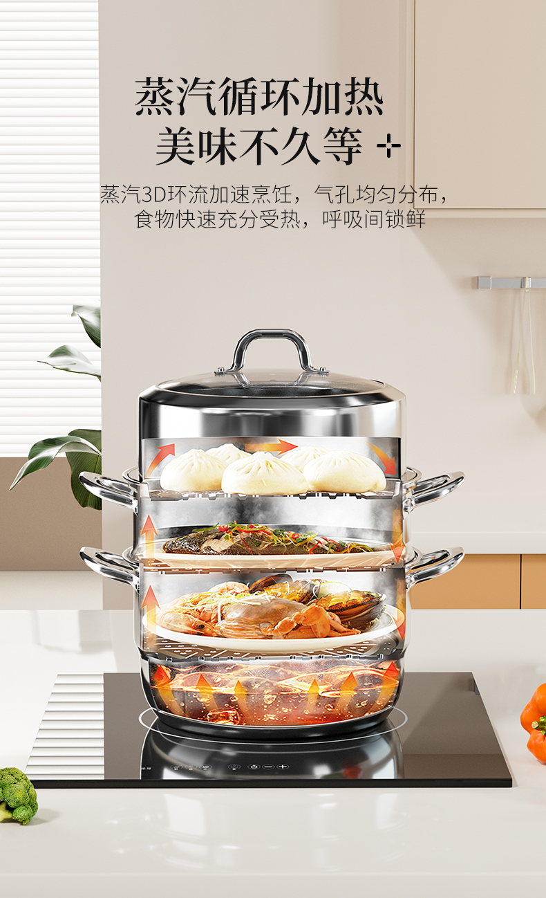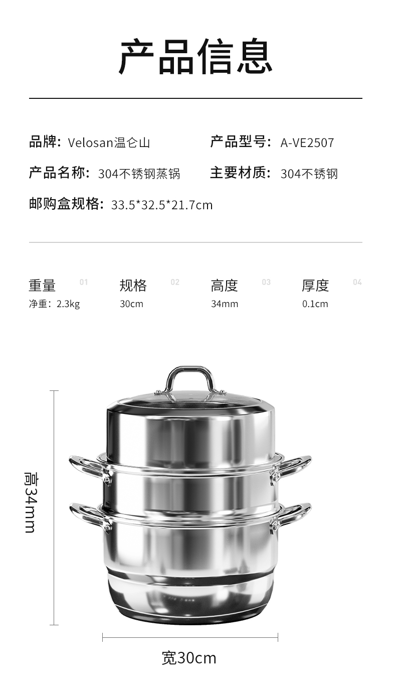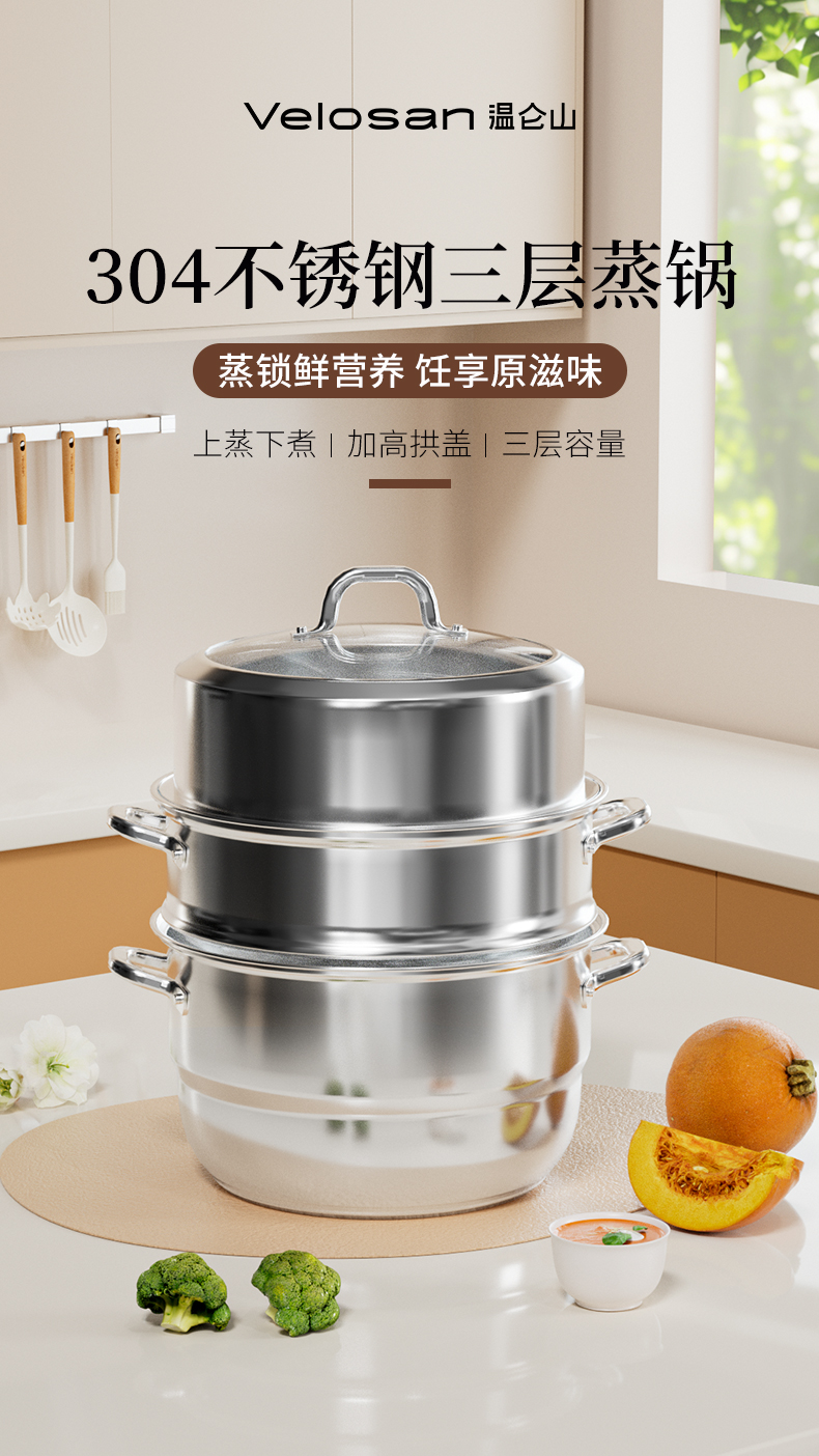 温仑山(VELOSAN) 不锈钢三层蒸锅 A-VE2507 30cm 银色(单位:个)