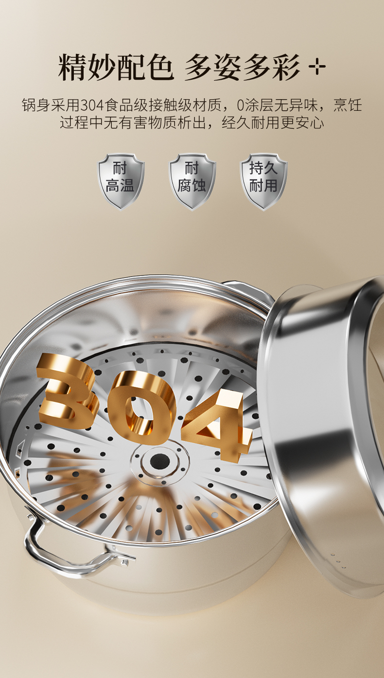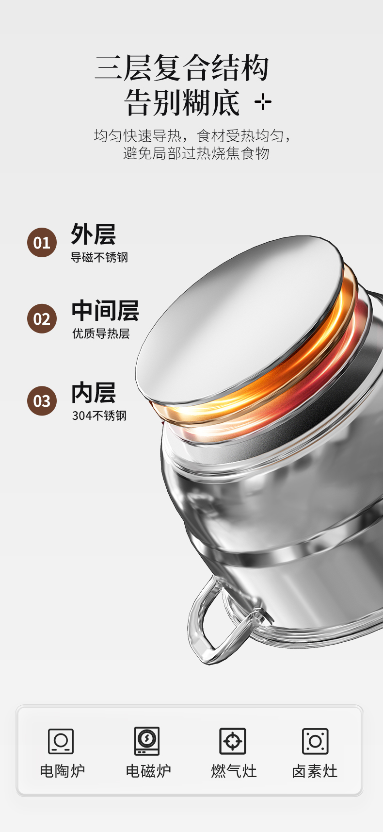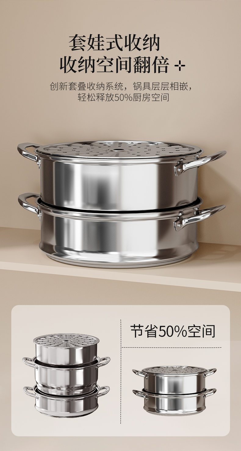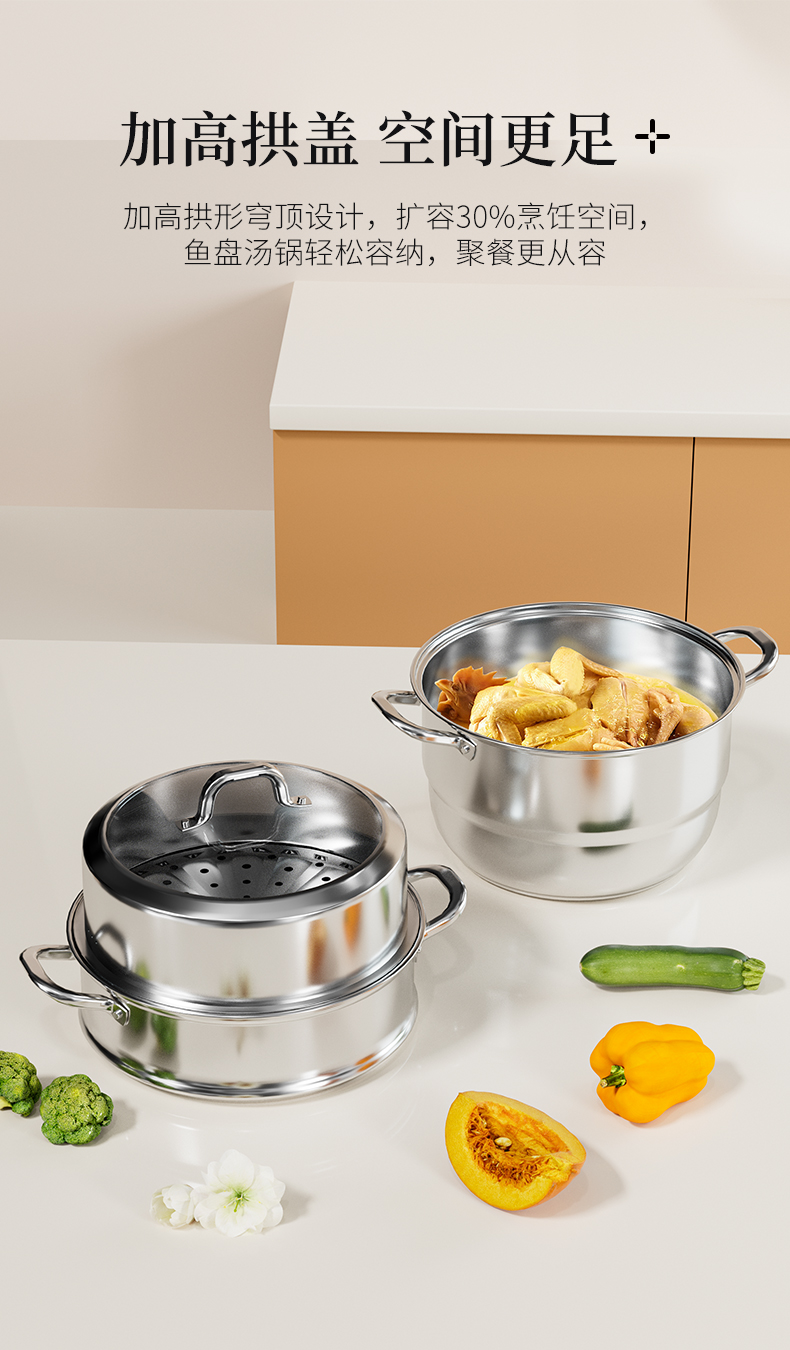 温仑山(VELOSAN) 不锈钢三层蒸锅 A-VE2507 30cm 银色(单位:个)
