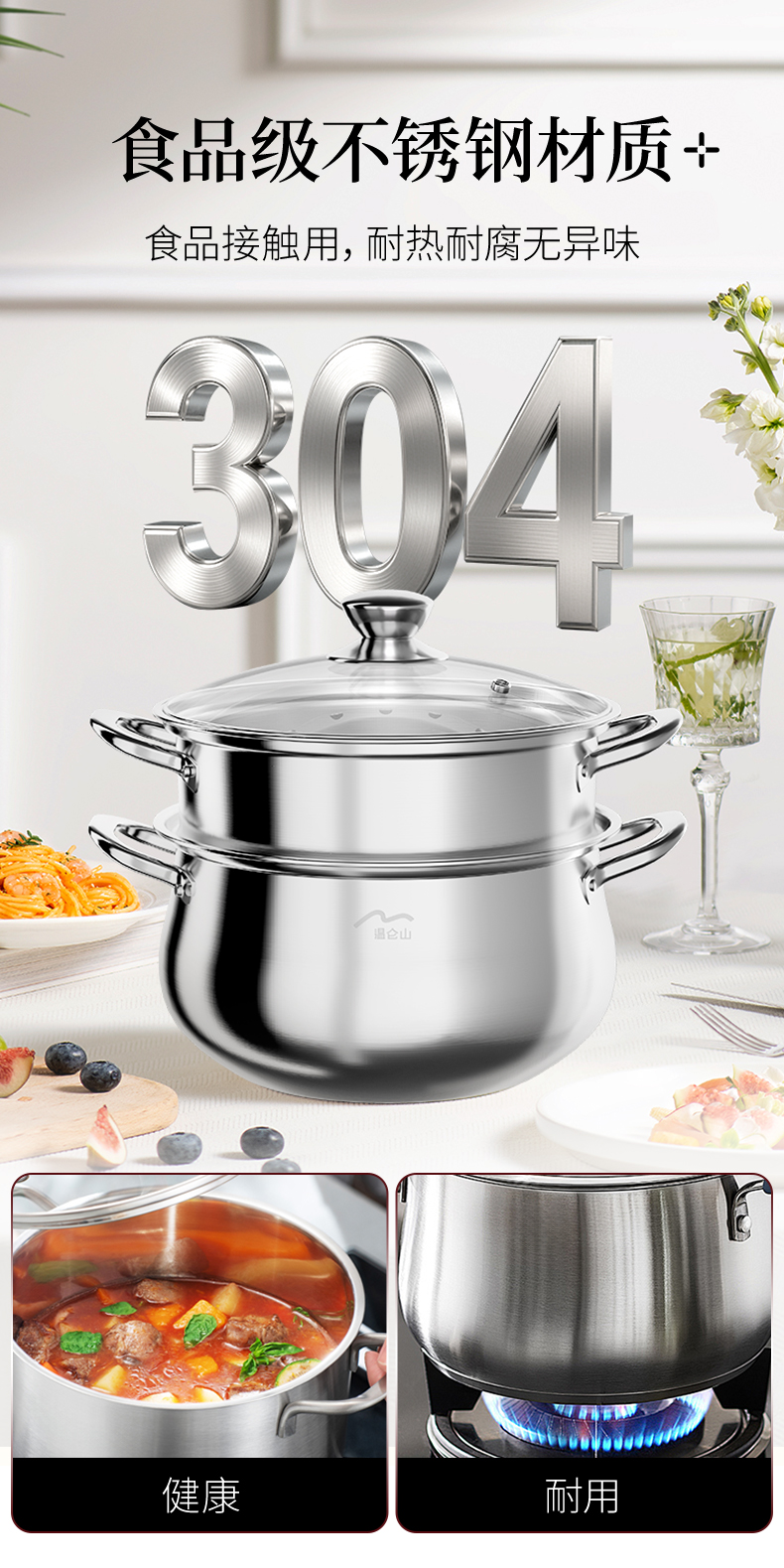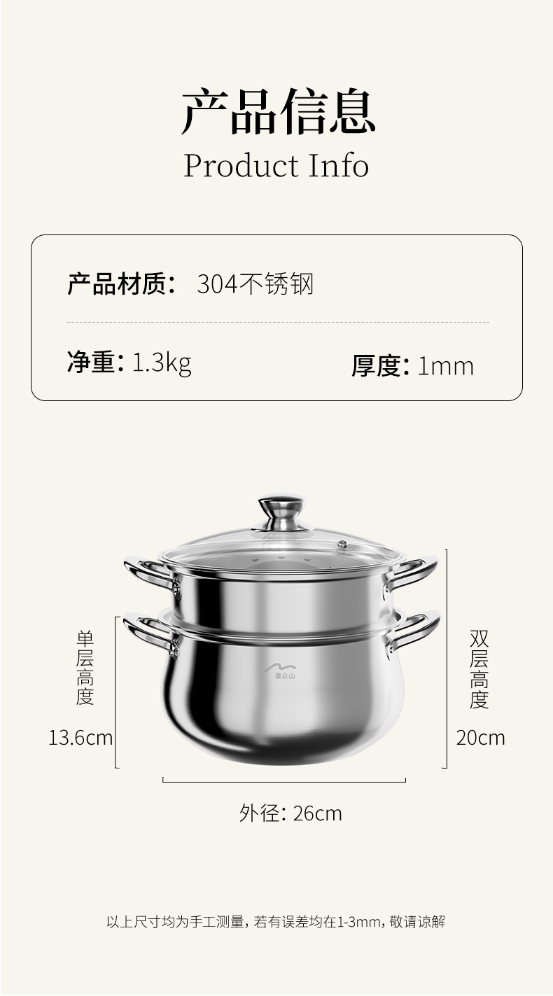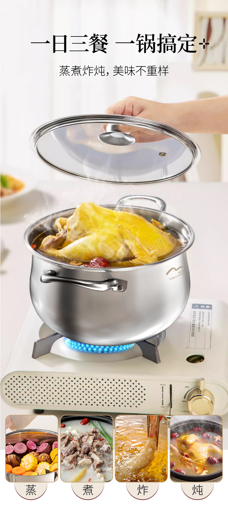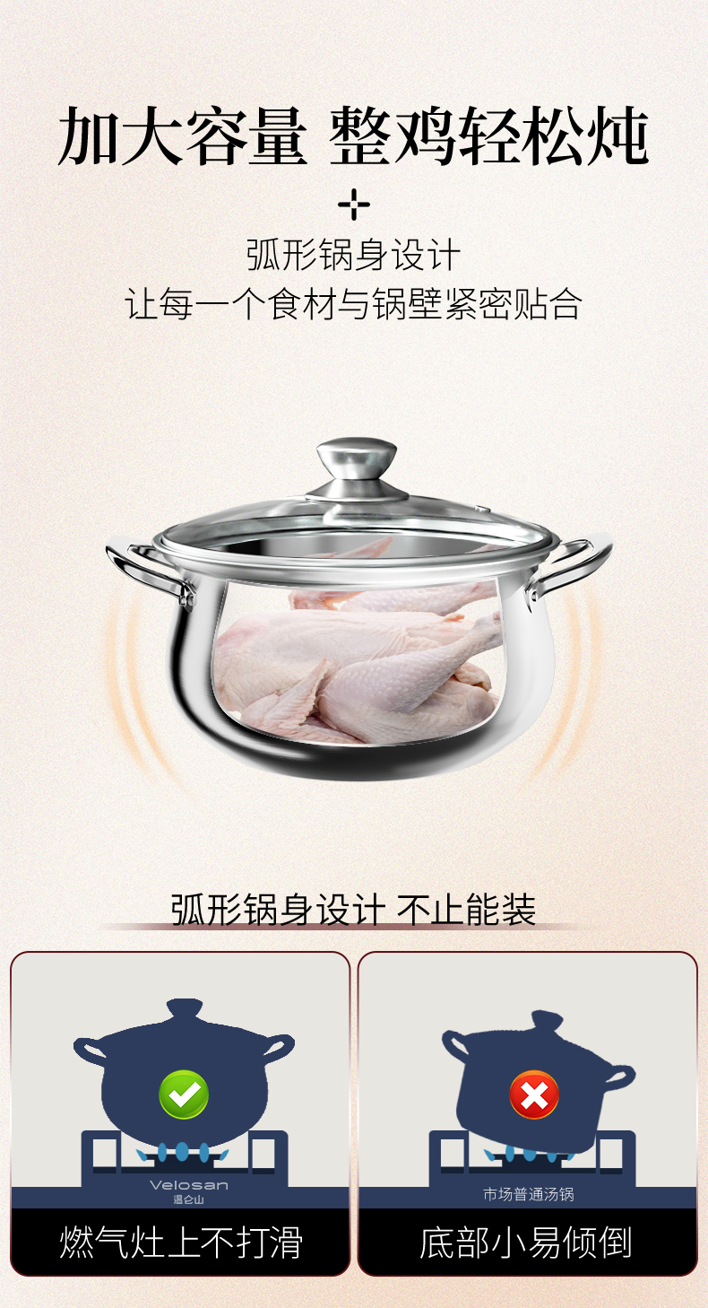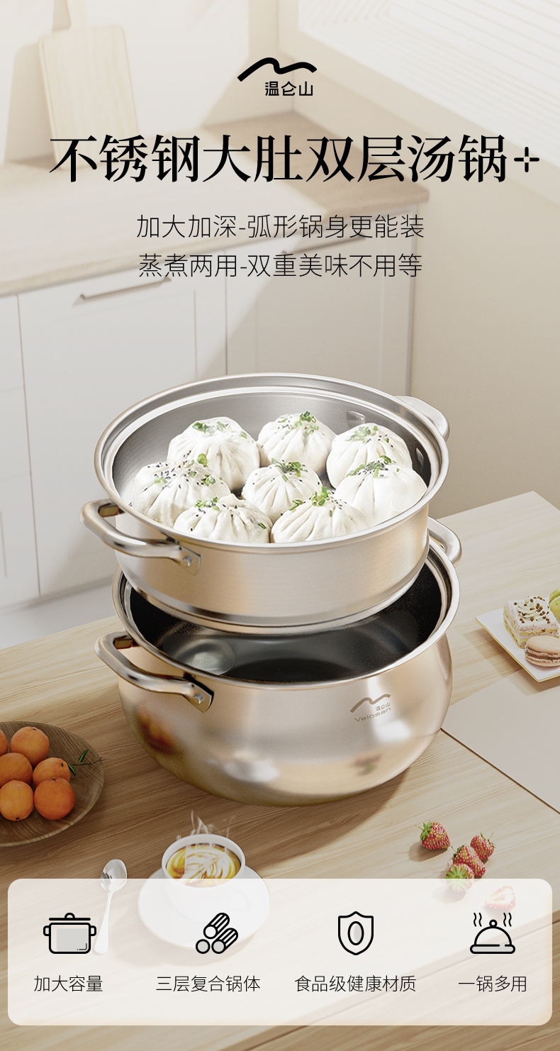 温仑山(VELOSAN) 不锈钢大肚双层汤锅 A-VE2507 26cm 银色(单位:个)