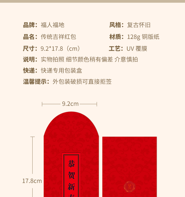 福人福地(FURENFUDI) 中国年高级利是封红包 AG.22.c3.01.01P 20个/包 红色(单位:包)