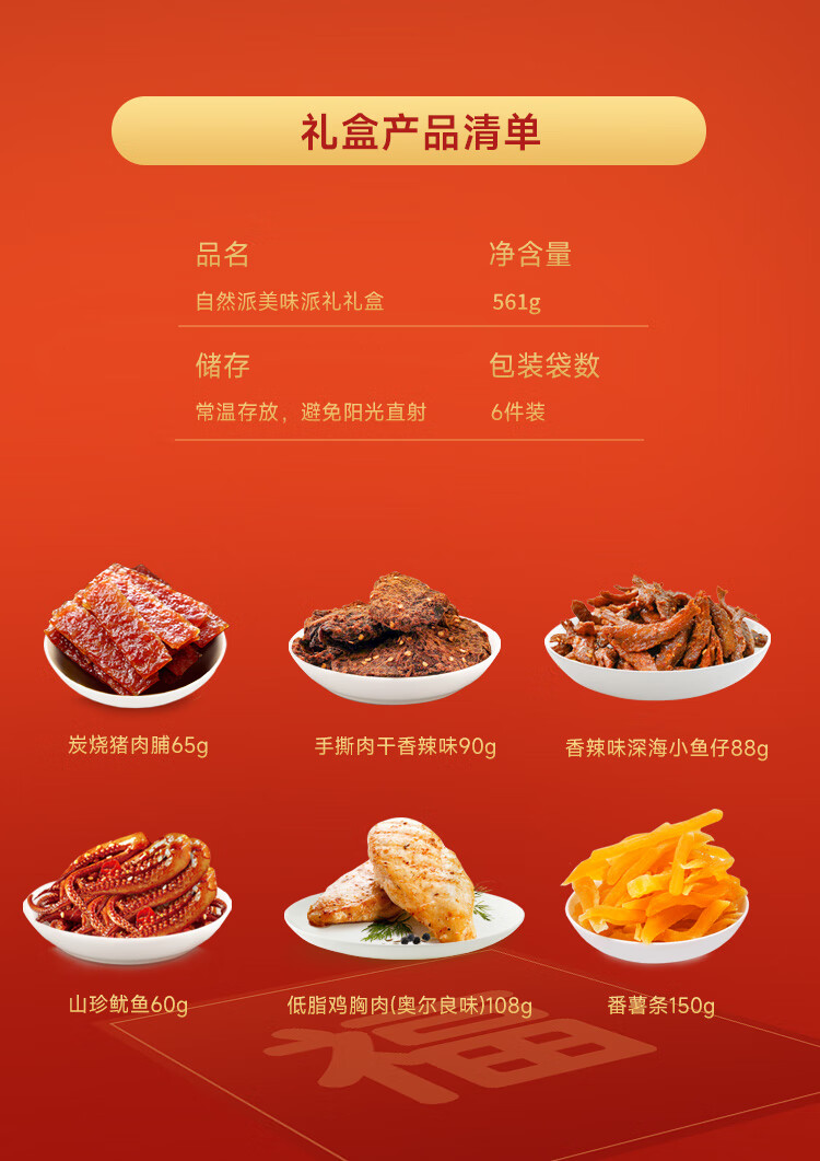 自然派 零食 肉肉美味派礼盒 561g 灰橙色(单位:盒)