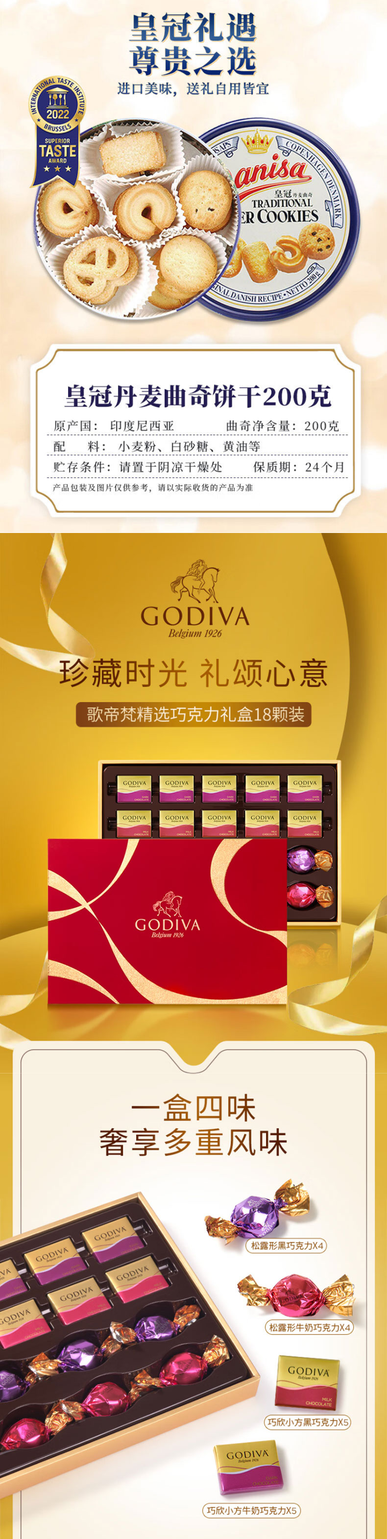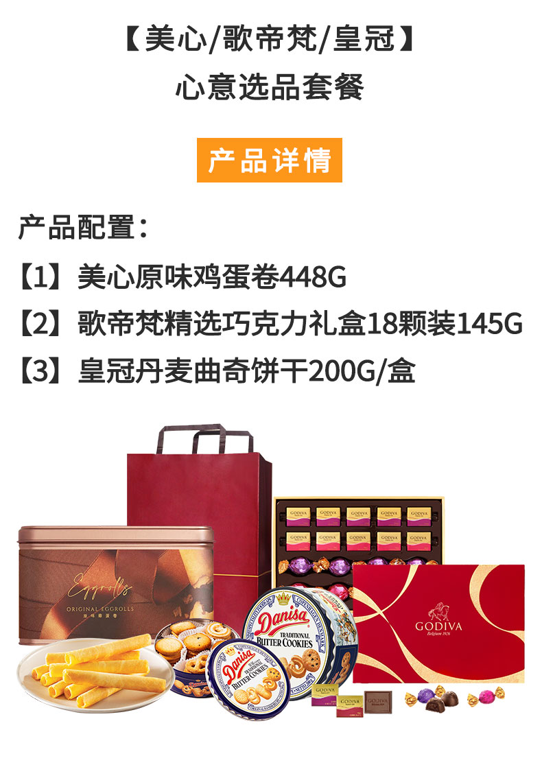 美心(Meixin) /歌帝梵/皇冠-蛋卷曲奇巧克力 心意选品组合 793g 红色(单位:套)