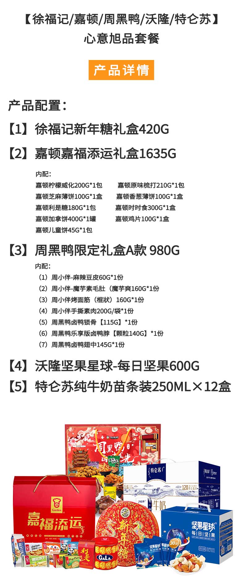 徐福记 /嘉顿/周黑鸭/沃隆/特仑苏-牛奶休食 心意旭品组合 2635g+3L 红色(单位:套)