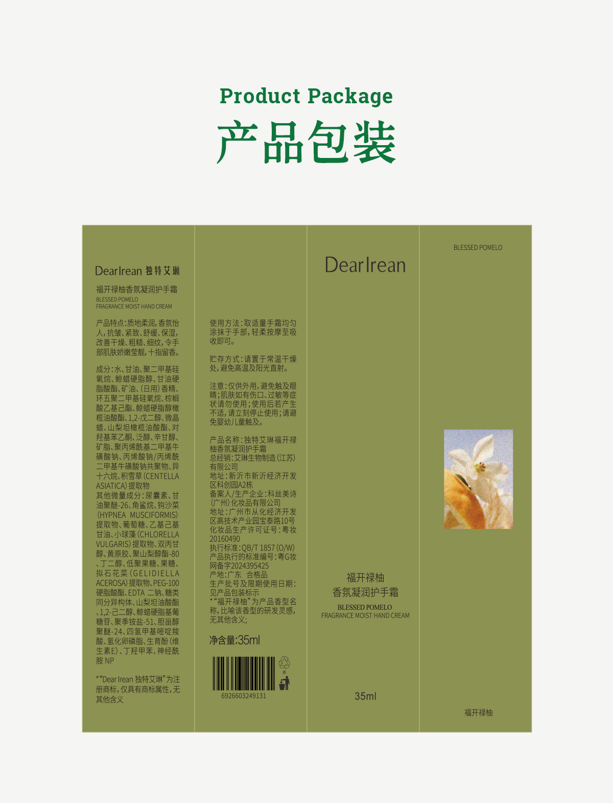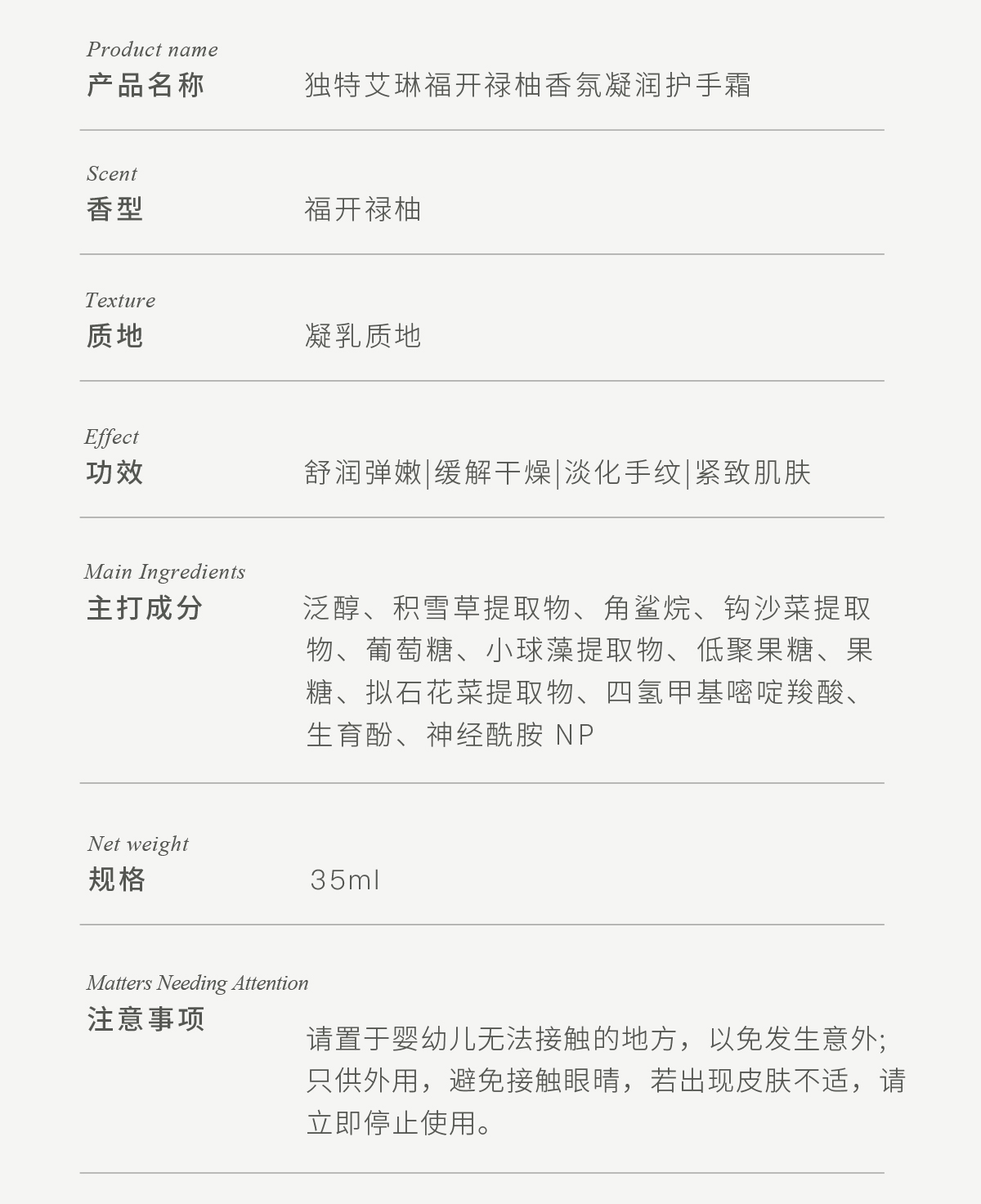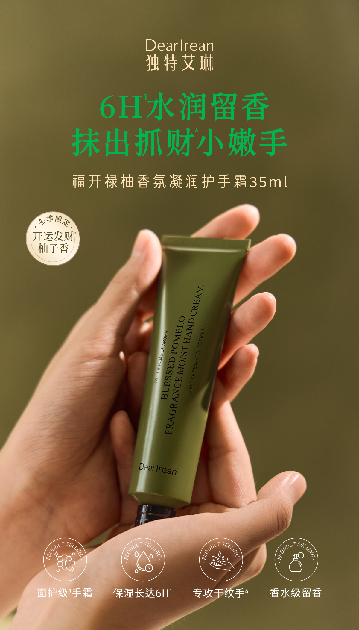 独特艾琳(Dear lrean) 护手霜 福开禄柚 35ml 柠绿色(单位:支)