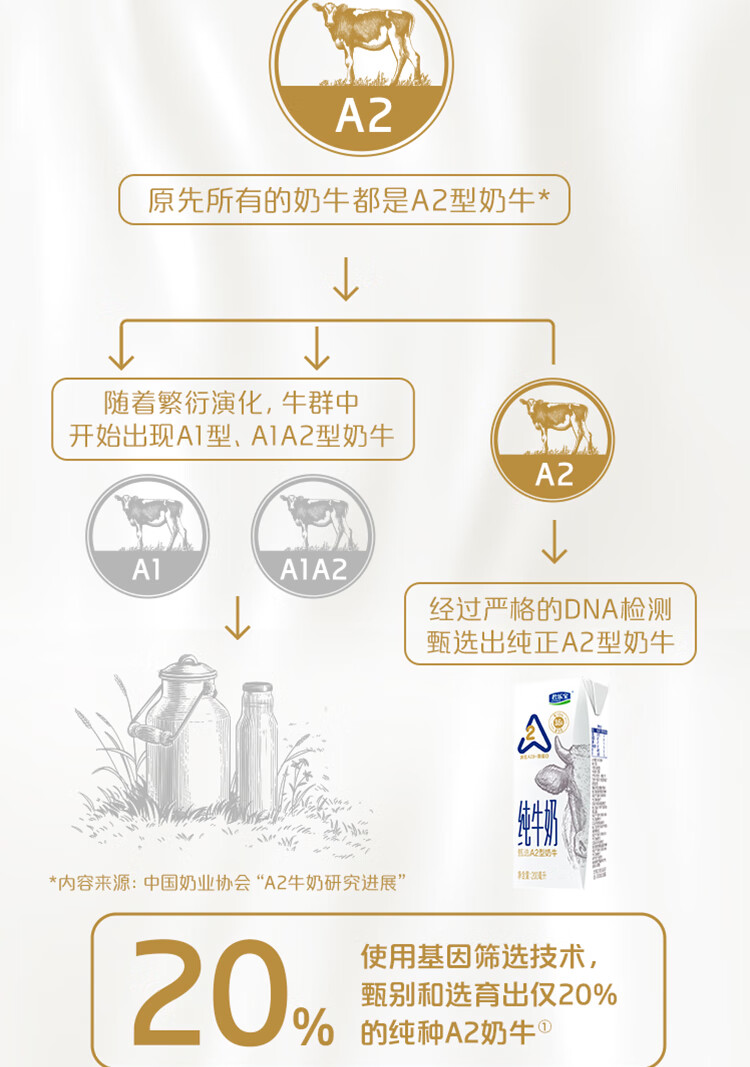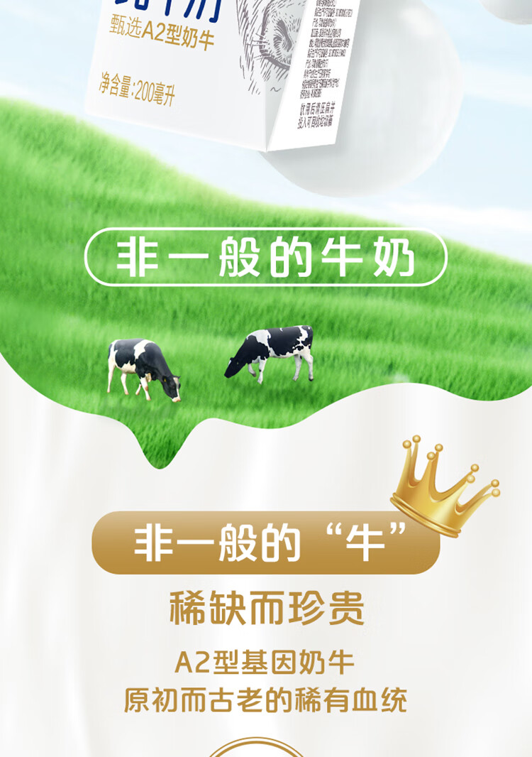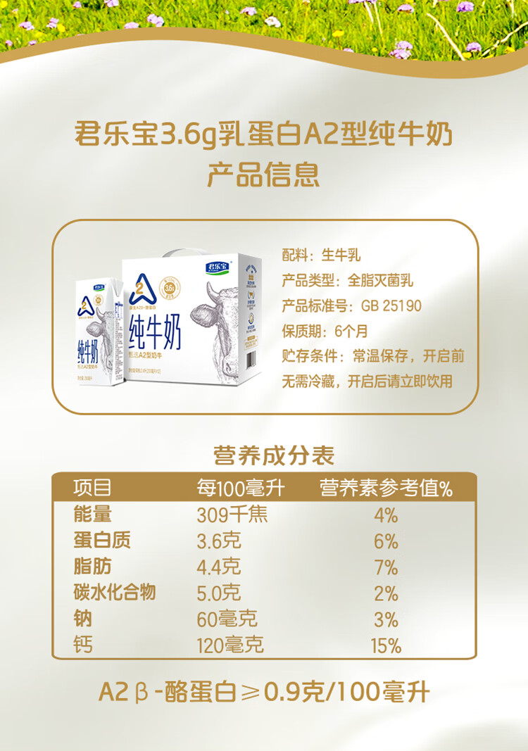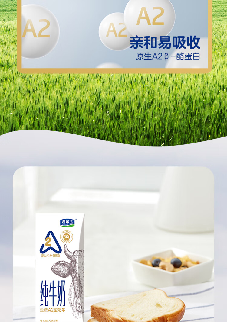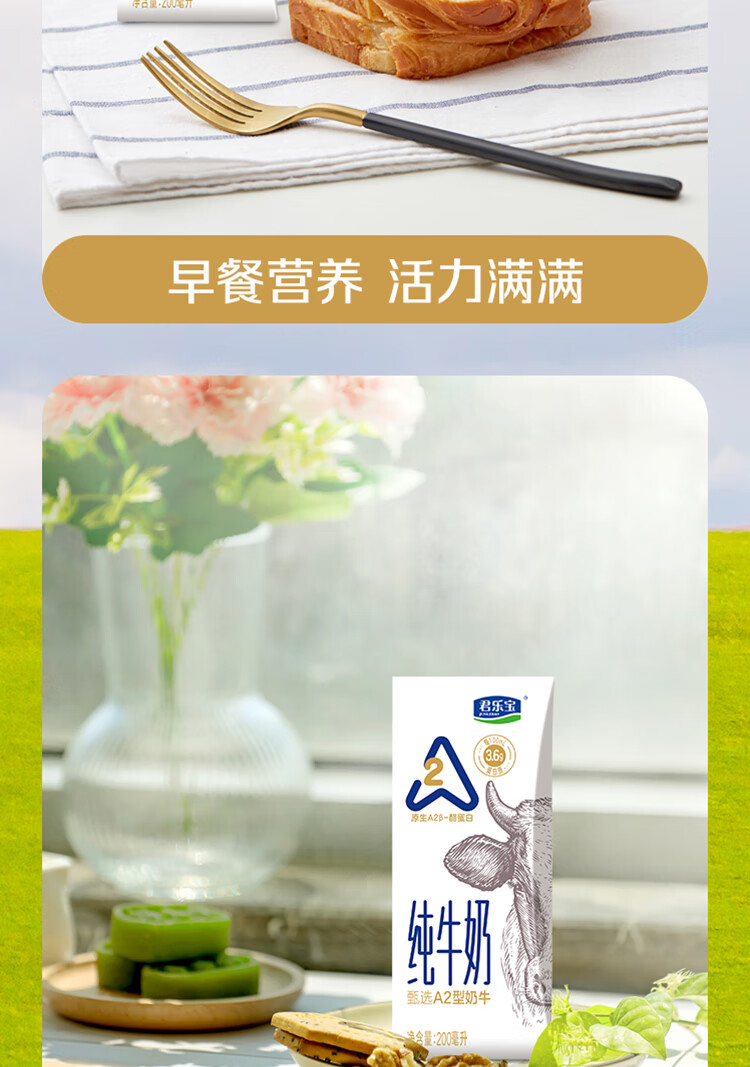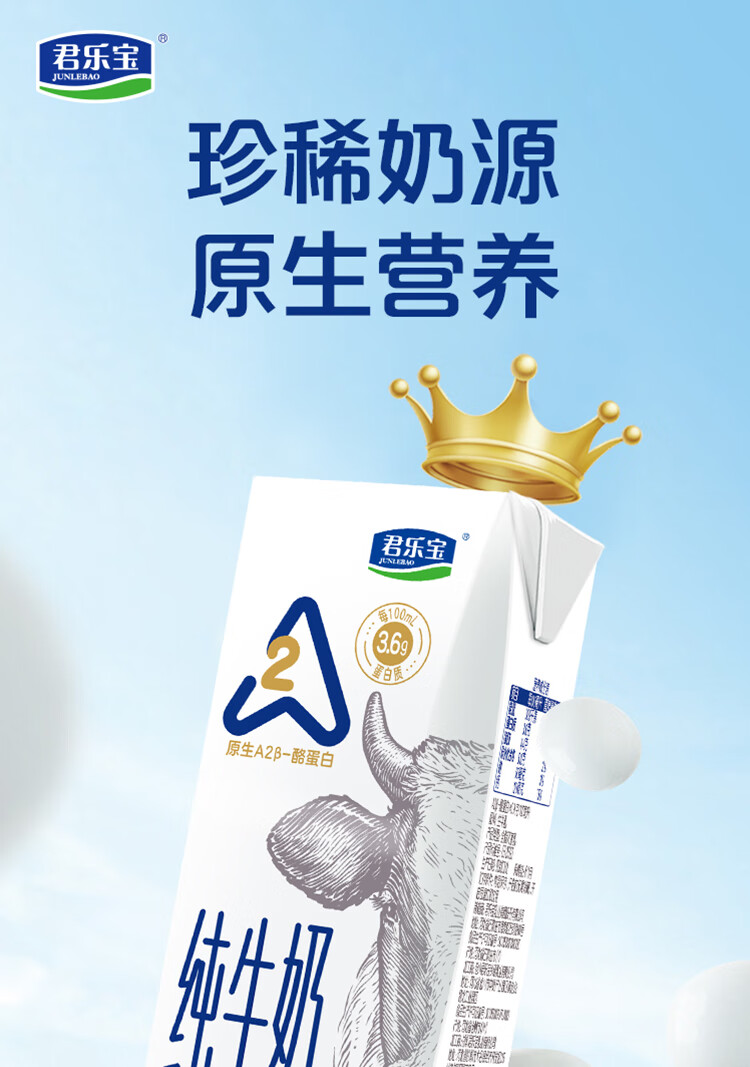 君乐宝(JUNLEBAO) 3.6g A2纯牛奶 A2β-酪蛋白 200ml*12礼盒装 白色(单位:盒)