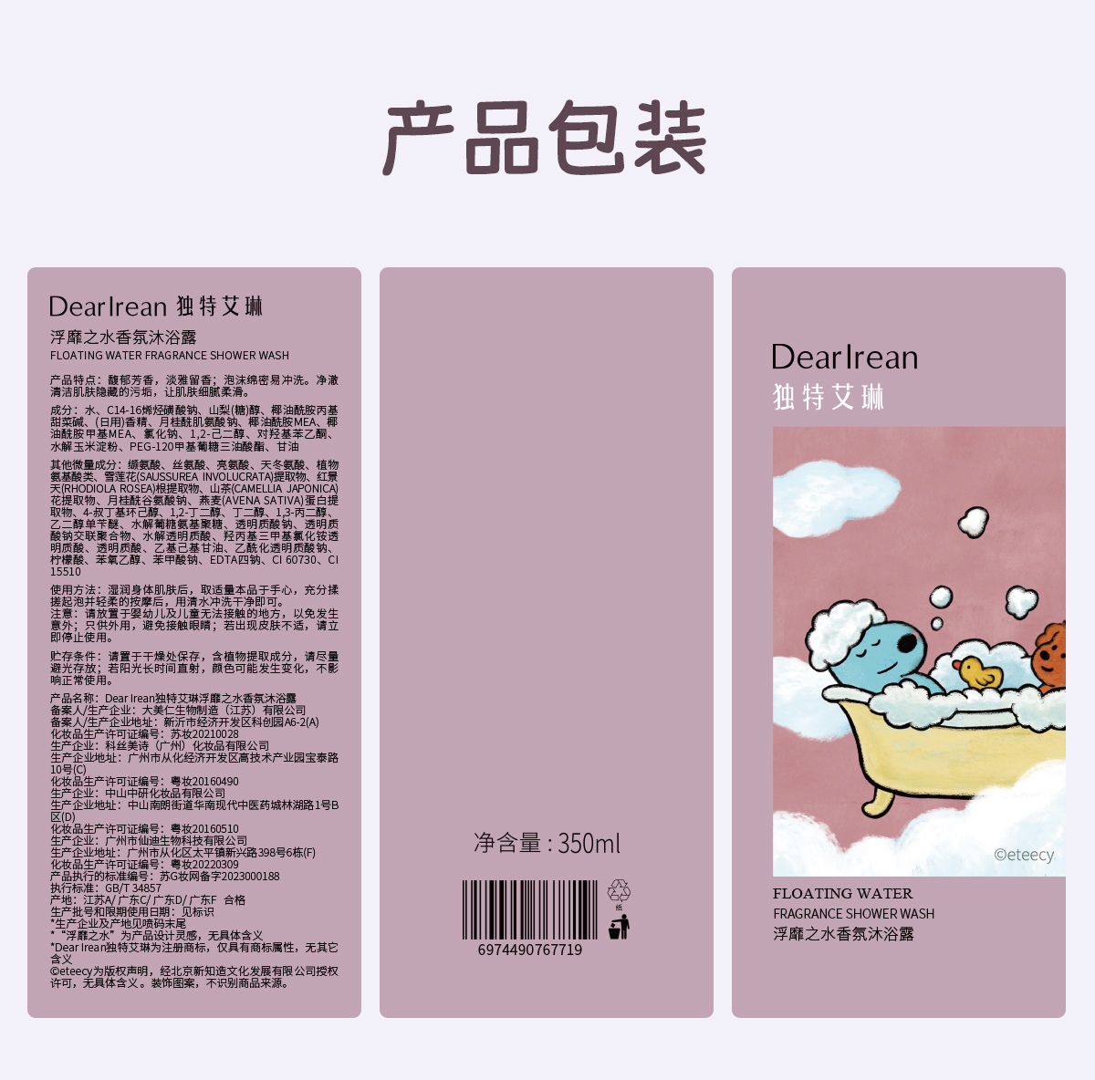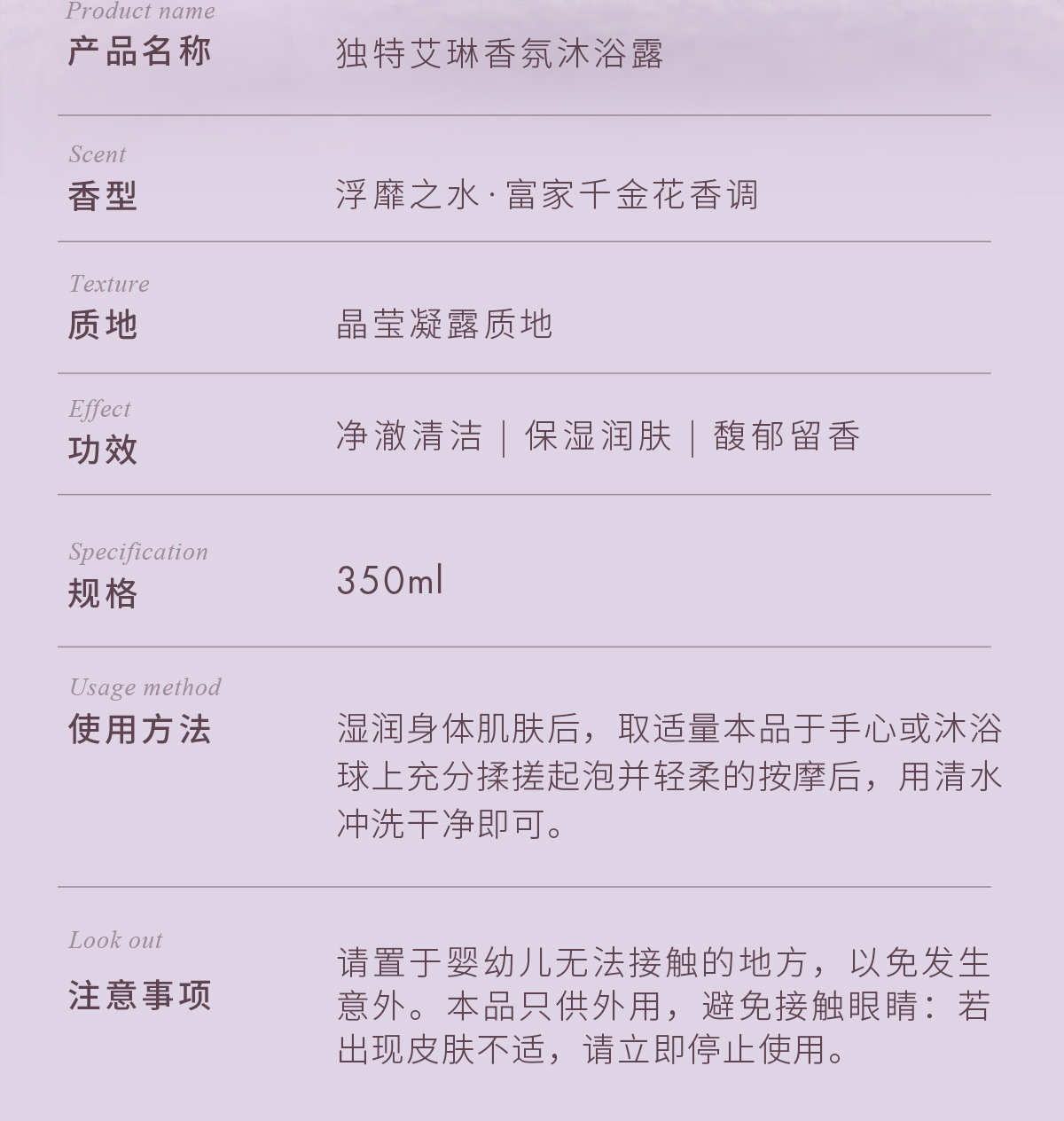 独特艾琳(Dear lrean) 沐浴露 浮靡之水 350ml 浅灰色(单位:瓶)