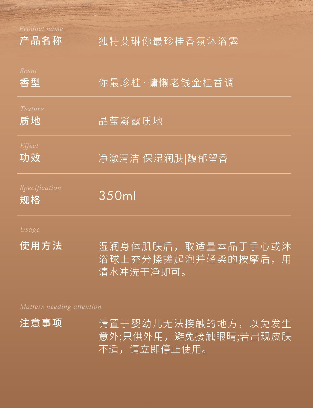独特艾琳(Dear lrean) 沐浴露 你最珍桂 350ml 香槟黄(单位:瓶)