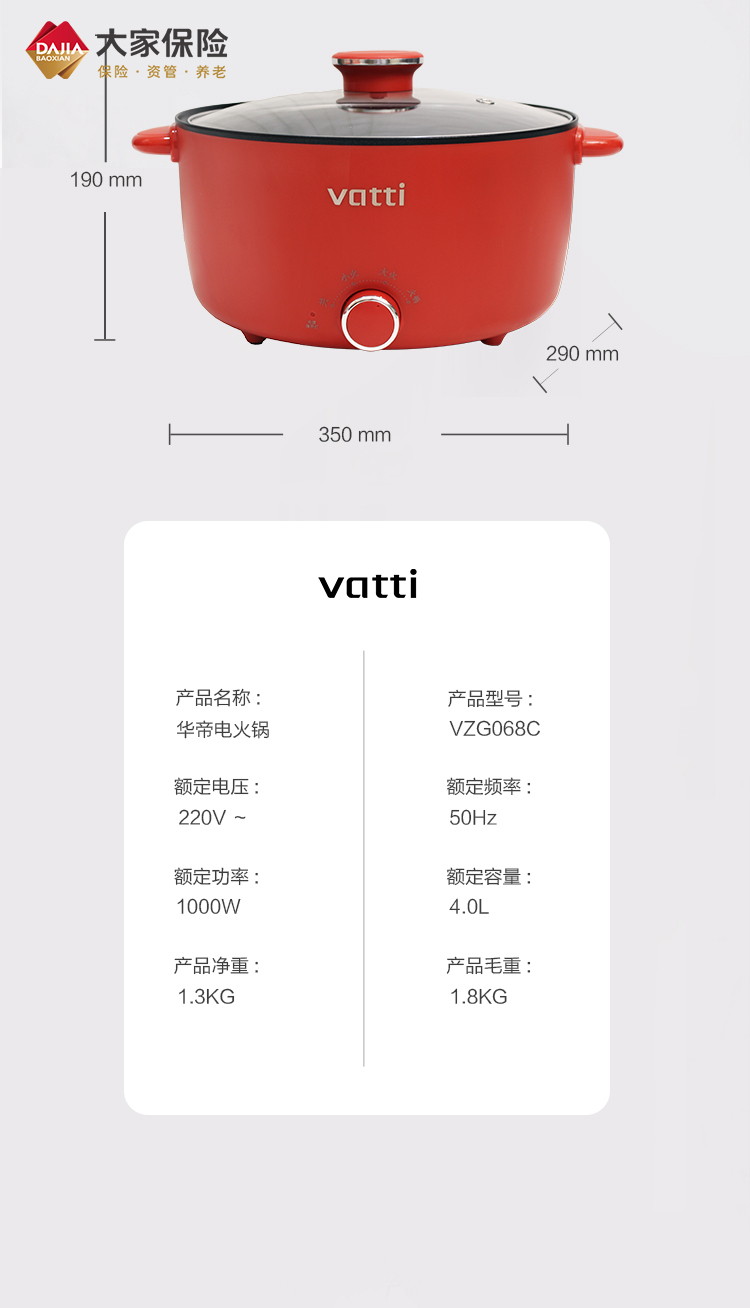 华帝(VATTI) 电火锅 VZG068C 4L 红色(单位:台)