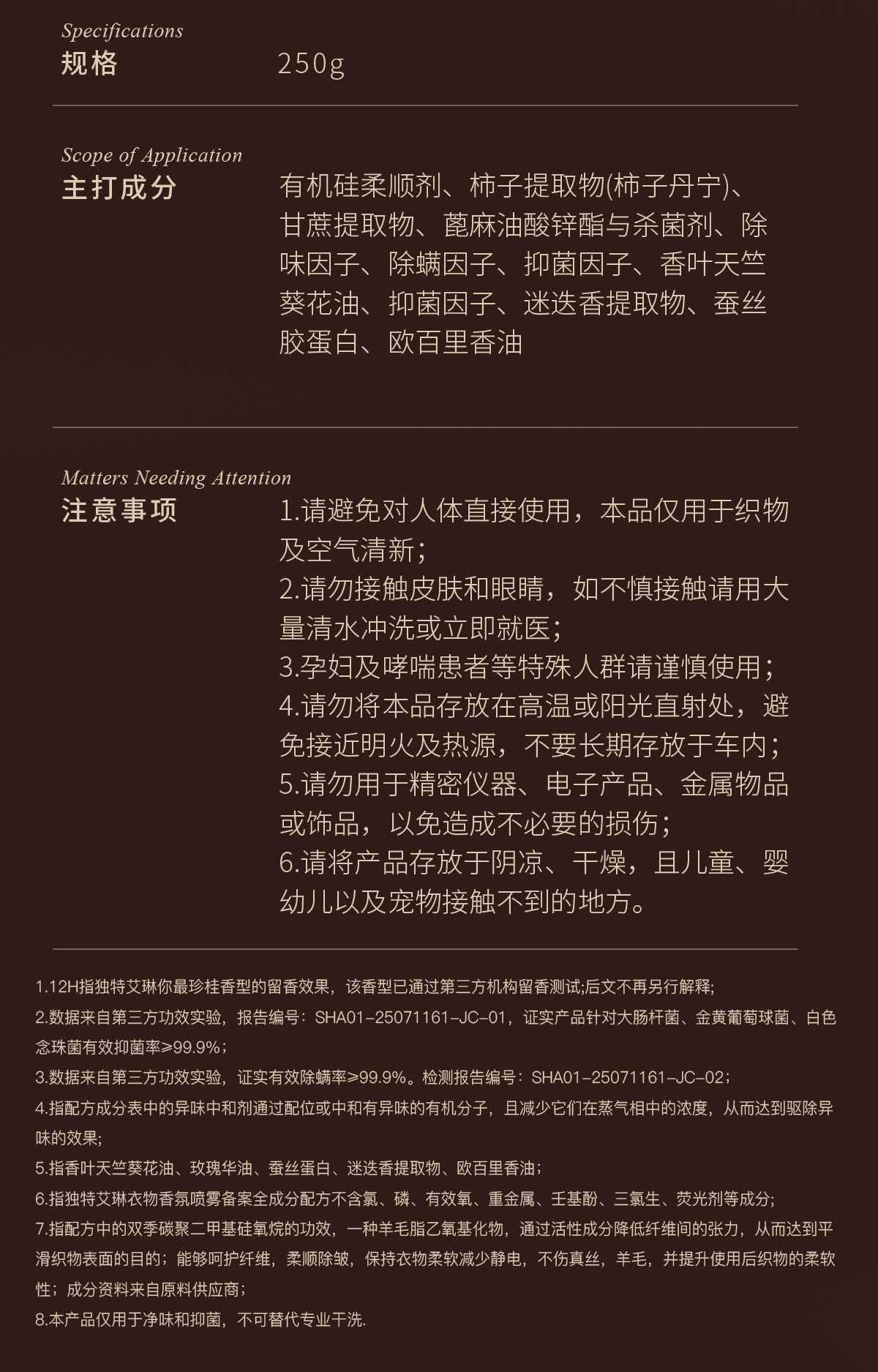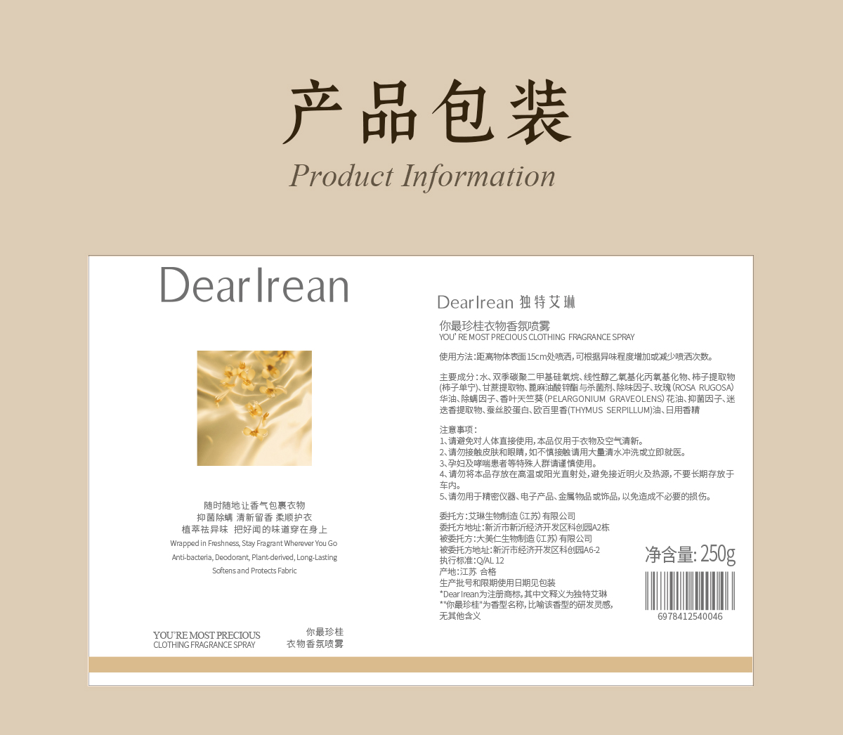 独特艾琳(Dear lrean) 衣物喷雾 你最珍桂 250g*1瓶 香槟黄(单位:瓶)
