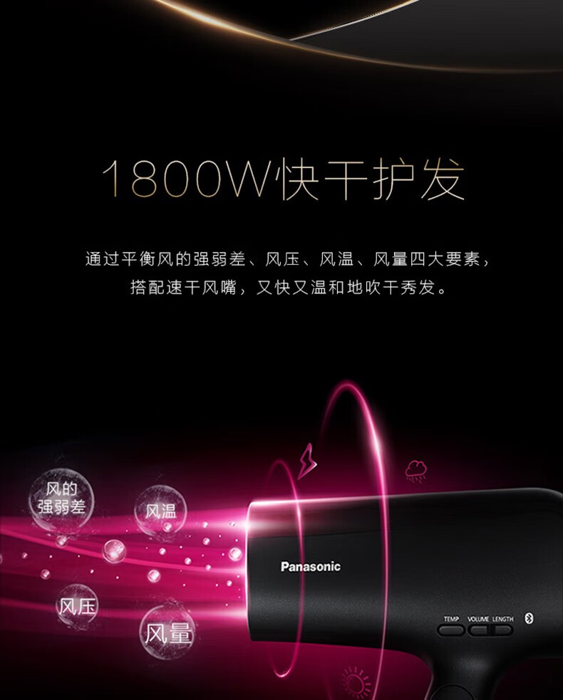 松下(Panasonic) 电吹风 XD30 1800W 黑色(单位:台)