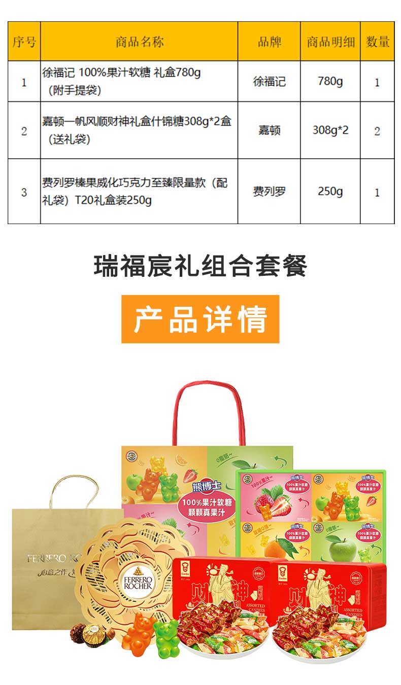 徐福记 /嘉顿/费列罗-糖果巧克力 瑞福宸礼组合 1646g 红色(单位:套)