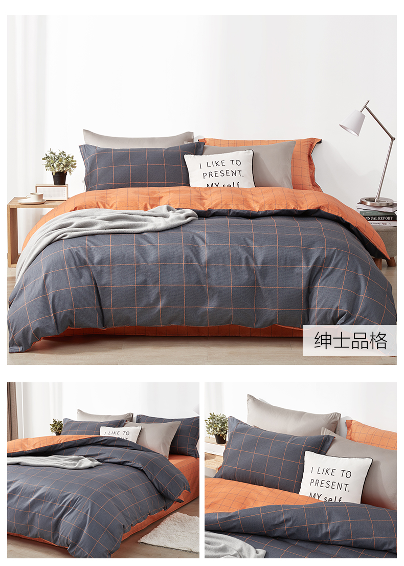 博洋家纺BEYOND HOME TEXTILE 全棉四件套 绅士品格W922040401172 200*230CM 深灰色(单位:套)