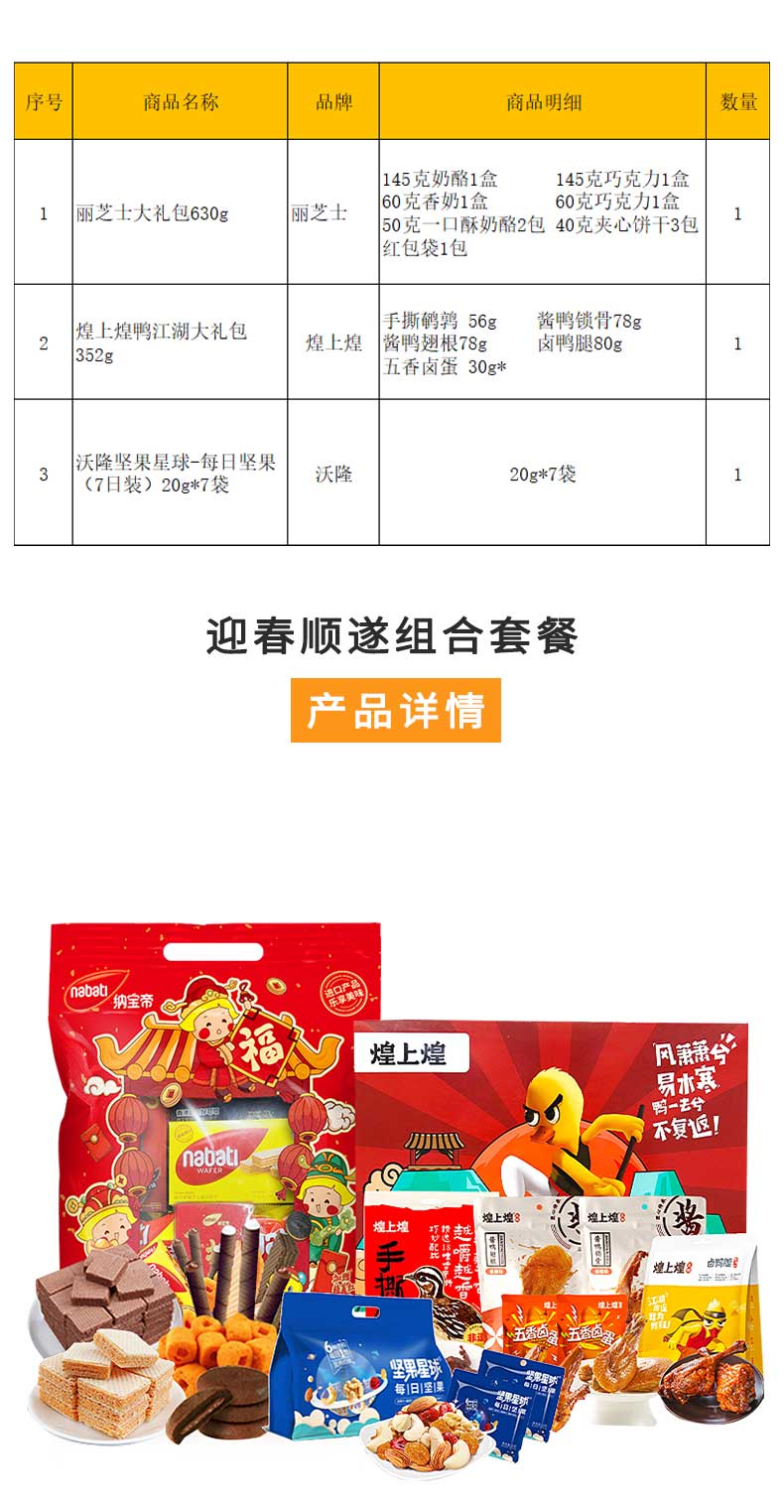 丽芝士(Richeese) /煌上煌/沃隆-饼干零食礼卤味熟食坚果 迎春顺遂组合 1122g 红色(单位:套)