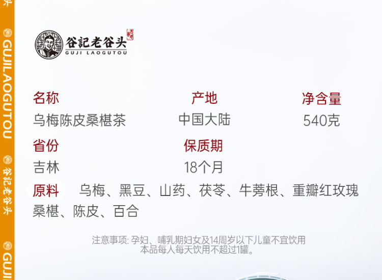 谷记老谷头 圆盒乌梅陈皮桑椹茶 养生茶 540g 绿色(单位:盒)