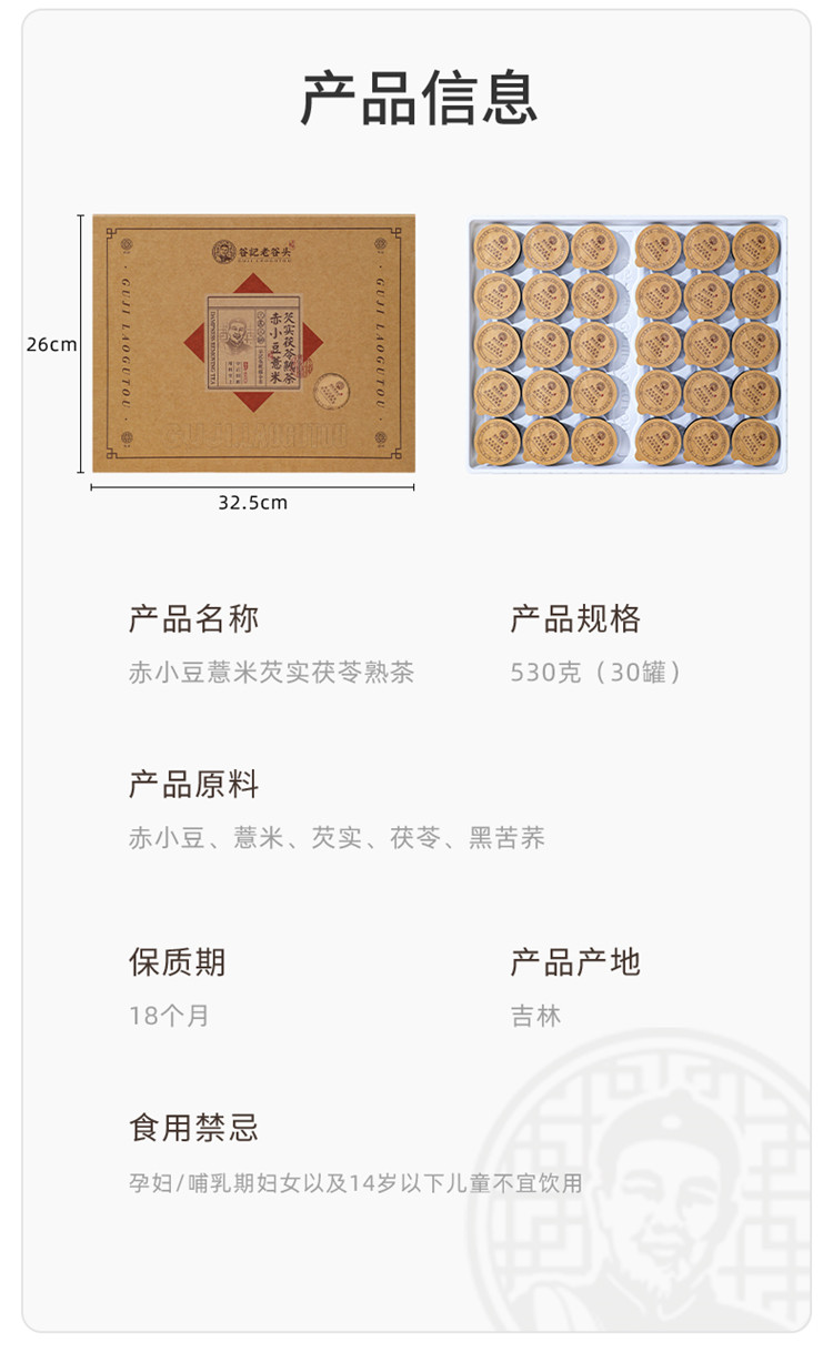 谷记老谷头 方盒赤小豆薏米芡实茯苓茶 养生茶 530g 棕色(单位:盒)