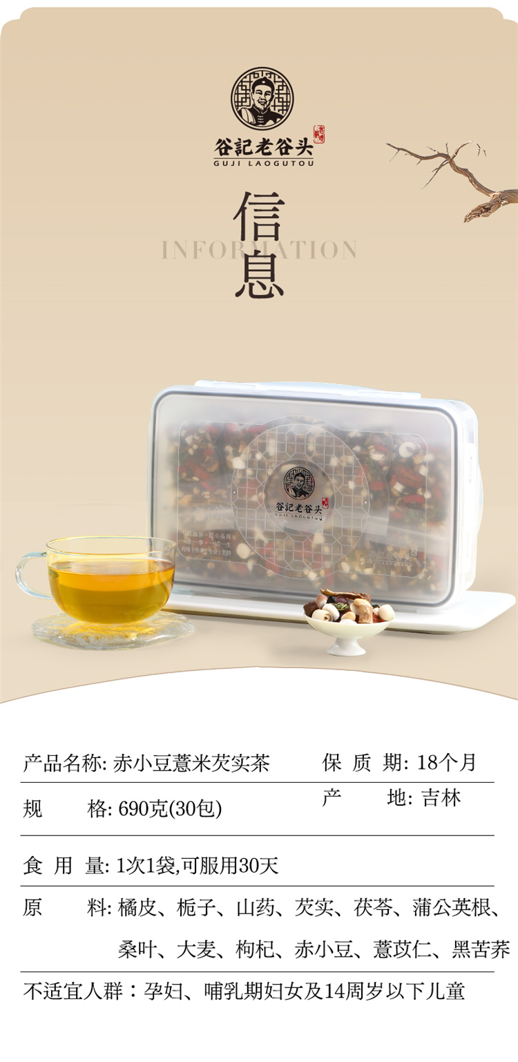 谷记老谷头 方盒赤小豆薏米芡实茶 养生茶 690g 白色(单位:盒)