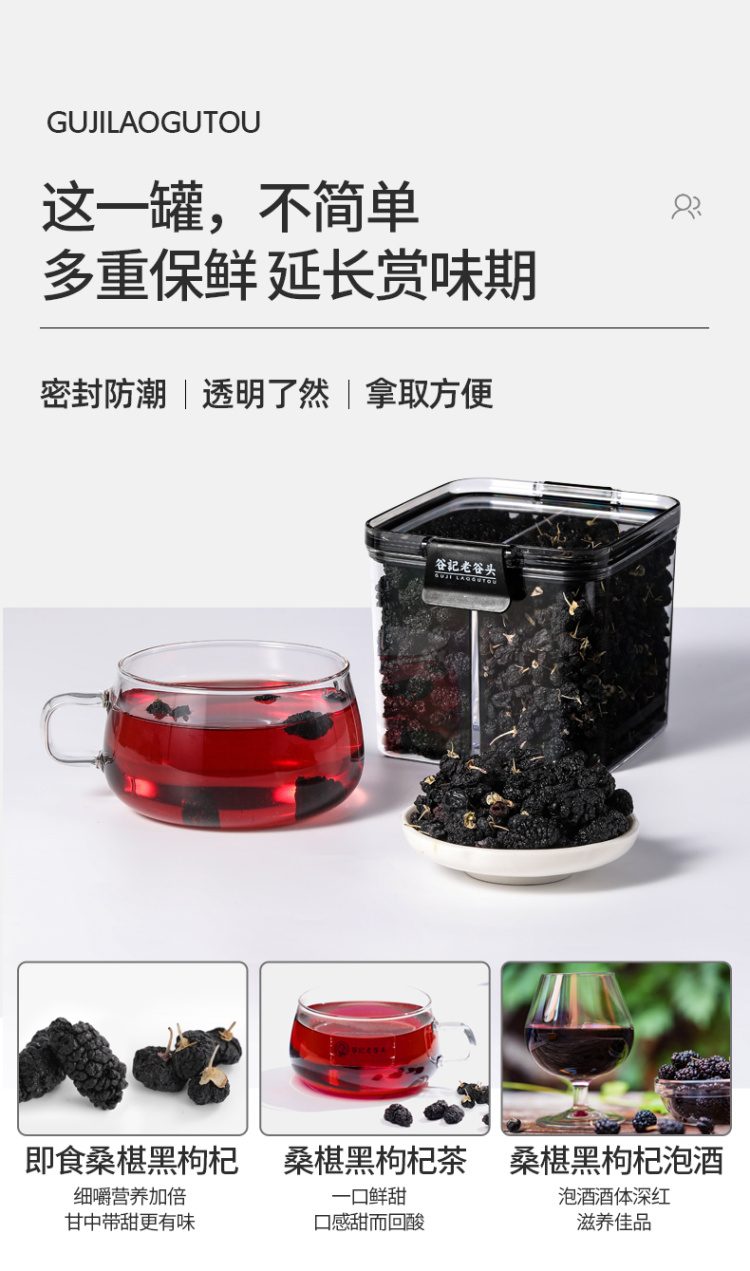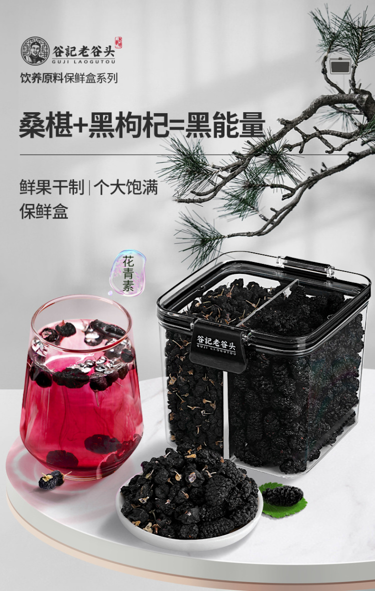 谷记老谷头 净口罐黑枸杞桑葚干组合 养生茶 275g 黑色(单位:盒)
