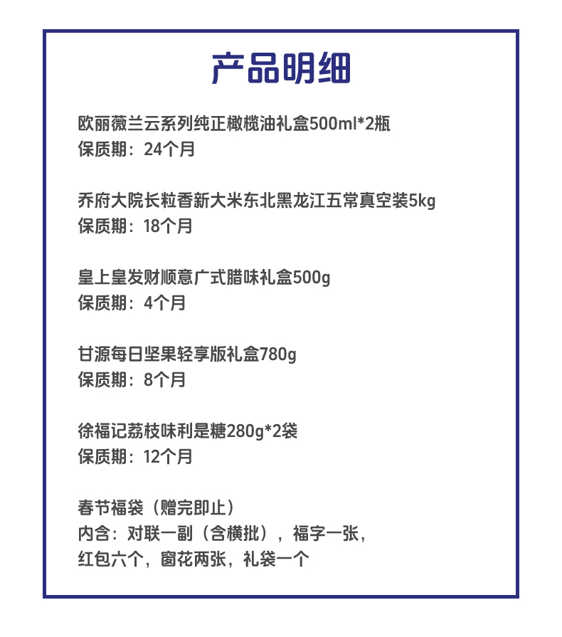 欧丽薇兰 /乔府大院/皇上皇/甘源/徐福记 粮油腊味坚果糖果组合 6840g+1L(含春节福袋) 混色(单位:组)