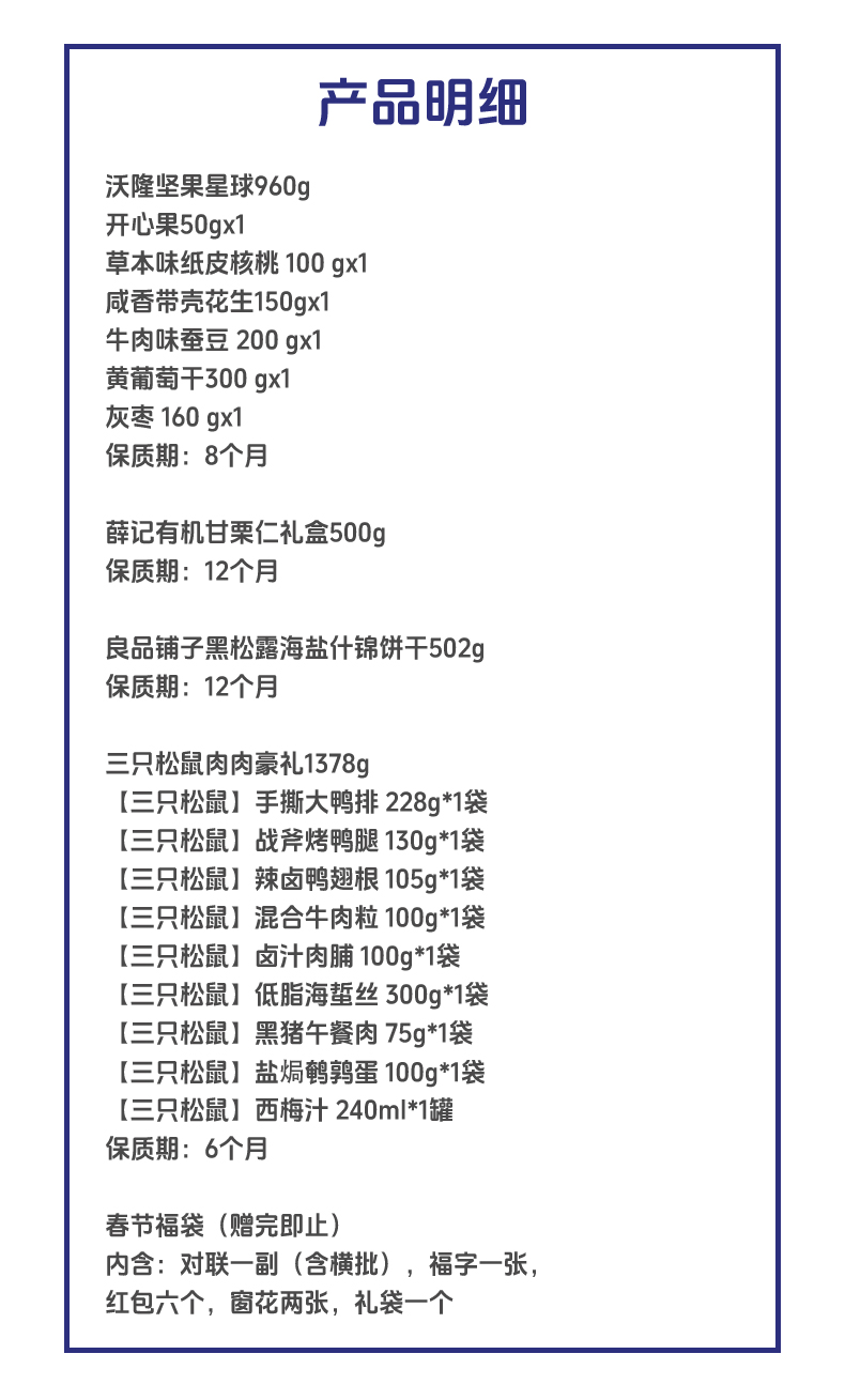 沃隆 /薛记/良品铺子/三只松鼠 坚果零食饼干肉肉礼组合 3340g(含春节福袋) 混色(单位:组)