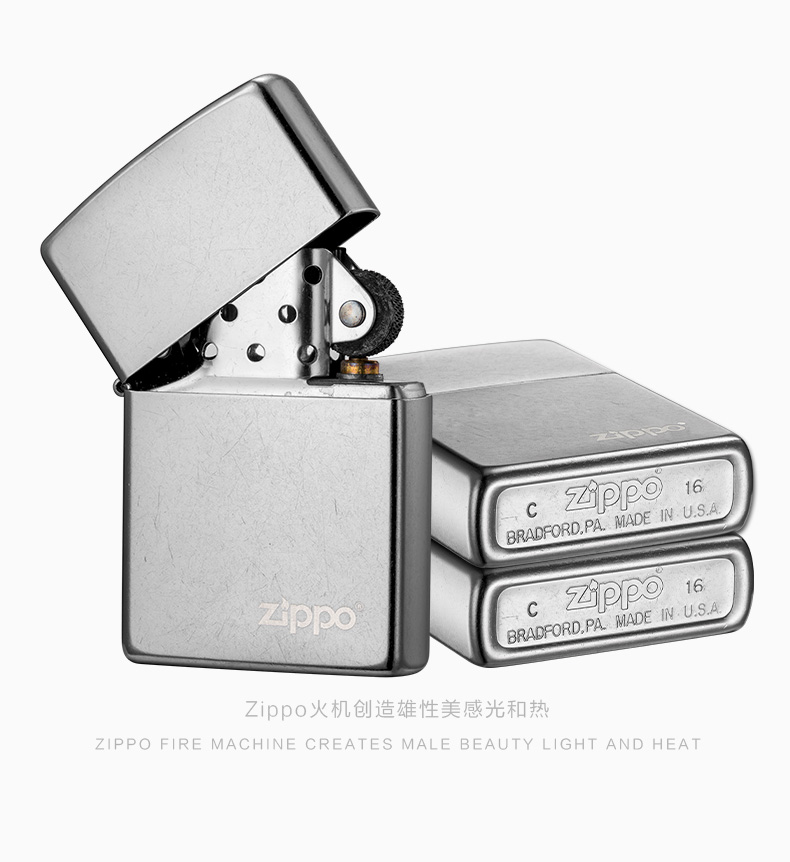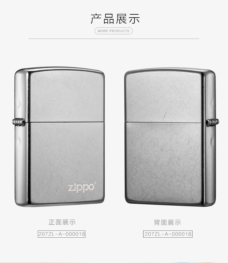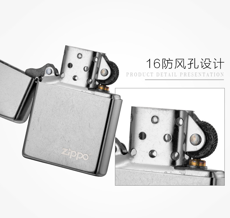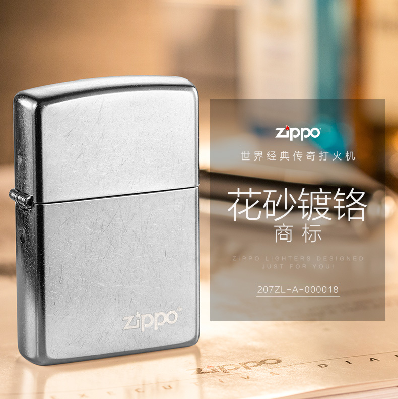 Zippo 煤油打火机 207ZL-A-000018 尺寸:55mm*38mm*14mm 花纱镀铬-商标(单位:支)