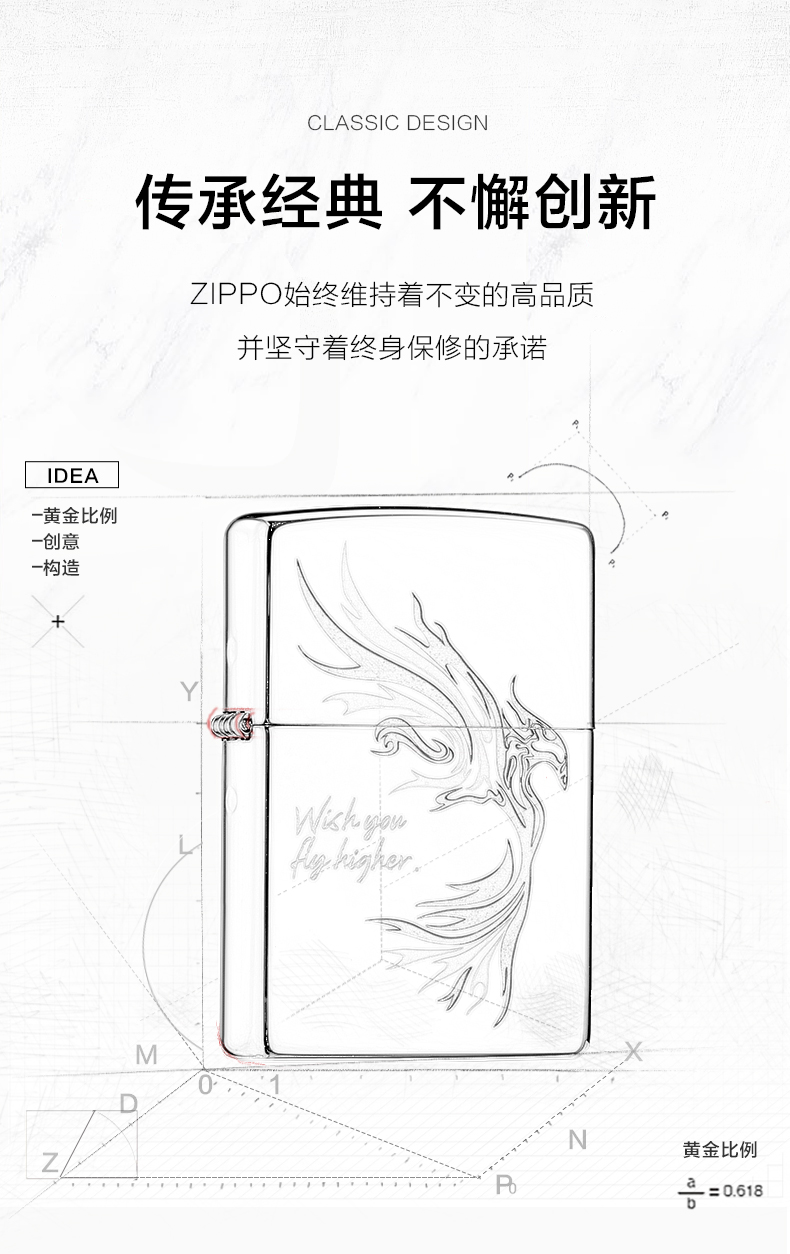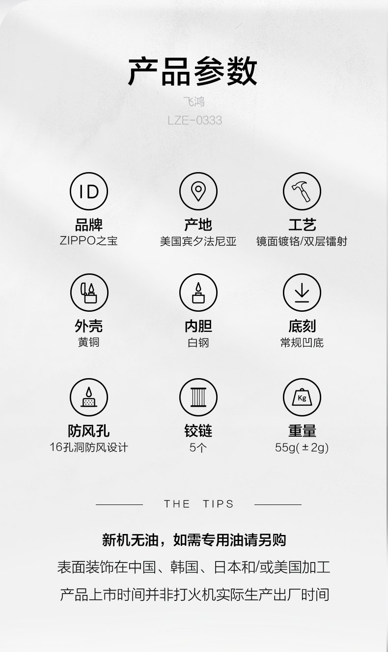 Zippo 煤油打火机 LZE-0333 尺寸:55mm*38mm*14mm 飞鸿(单位:支)